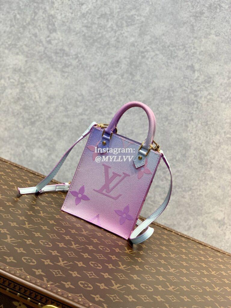 This special edition of the Petit Sac Plat is part of the Spring in the City collection. It comes in Monogram canvas printed with a color gradation inspired by the pastel hues of the sunrise. Lightweight and surprisingly spacious, this miniature replica of the iconic Sac Plat features a coordinating leather shoulder strap as well as two top handles.