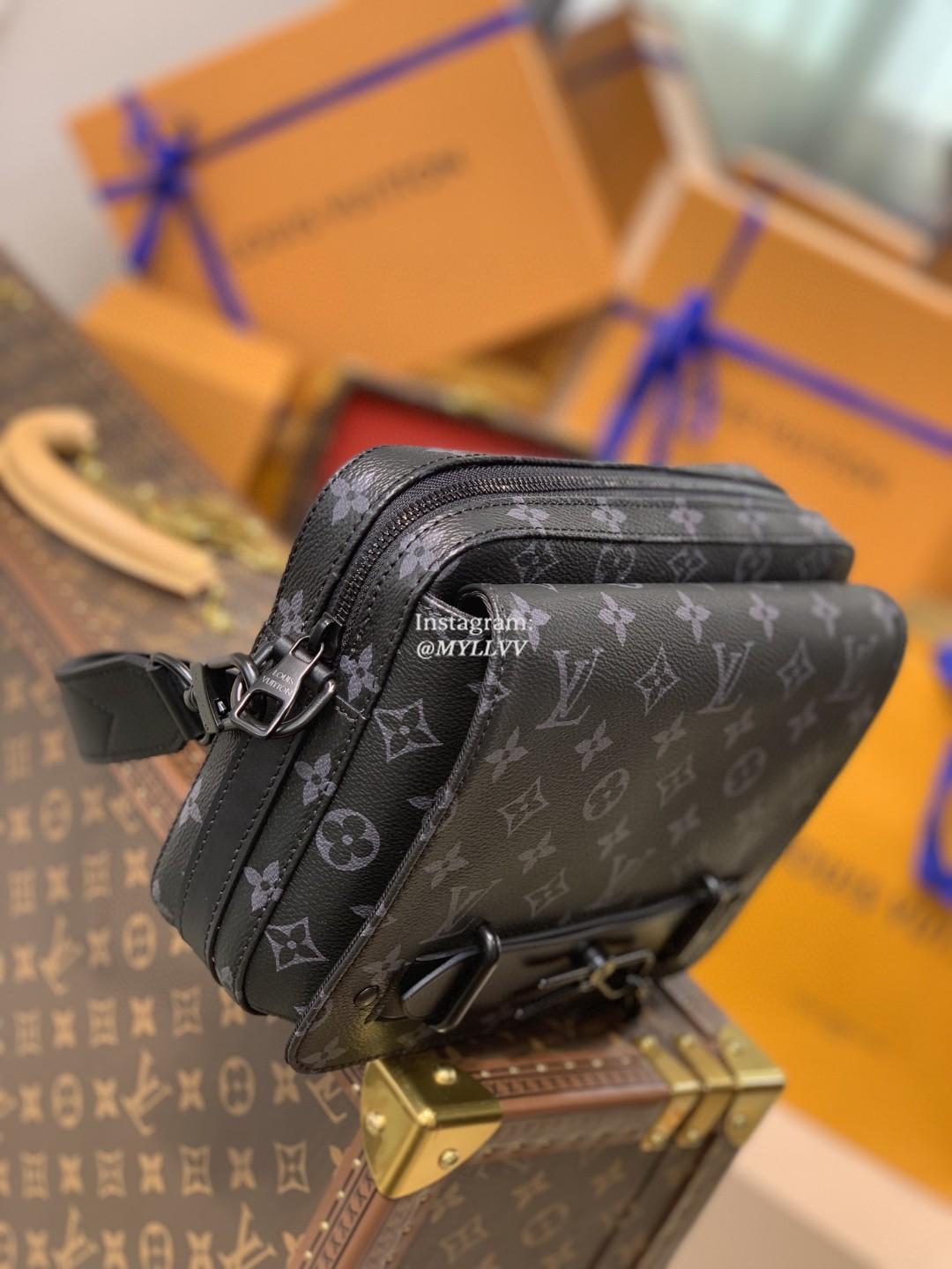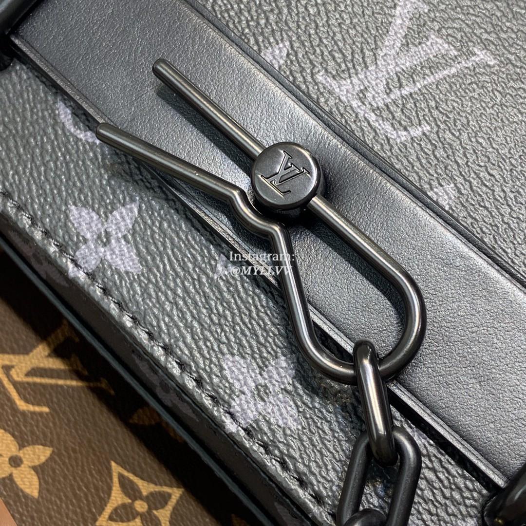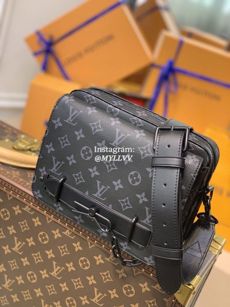 The new Steamer Messenger brings a sophisticated touch of Louis Vuitton heritage to the New Classics collection. The House’s iconic Monogram Eclipse canvas is accented by signature features like a steamer-style chain. Easy to carry with its removable strap, it offers a spacious zipped compartment plus a front flap pocket with a secure magnetic closure.