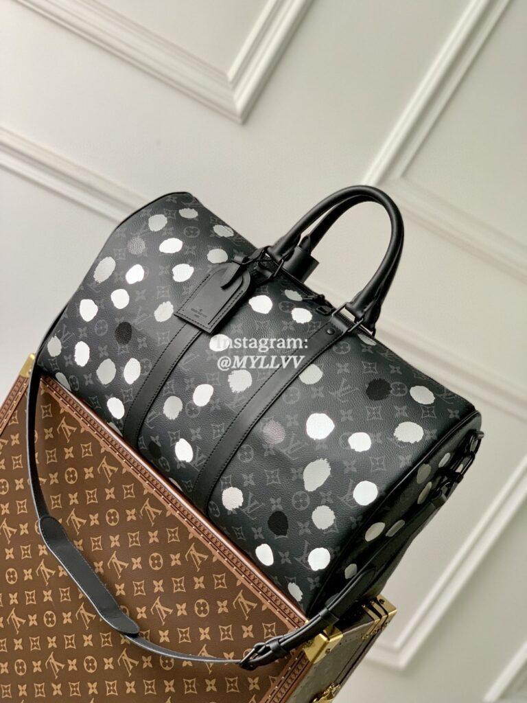 Top Quality Version:MYLLVV » Louis Vuitton Monogram Eclipse Coated Canvas With 3D Painted Dots Print LV x YK Bandoulière Keepall 45 Handbag M46400
