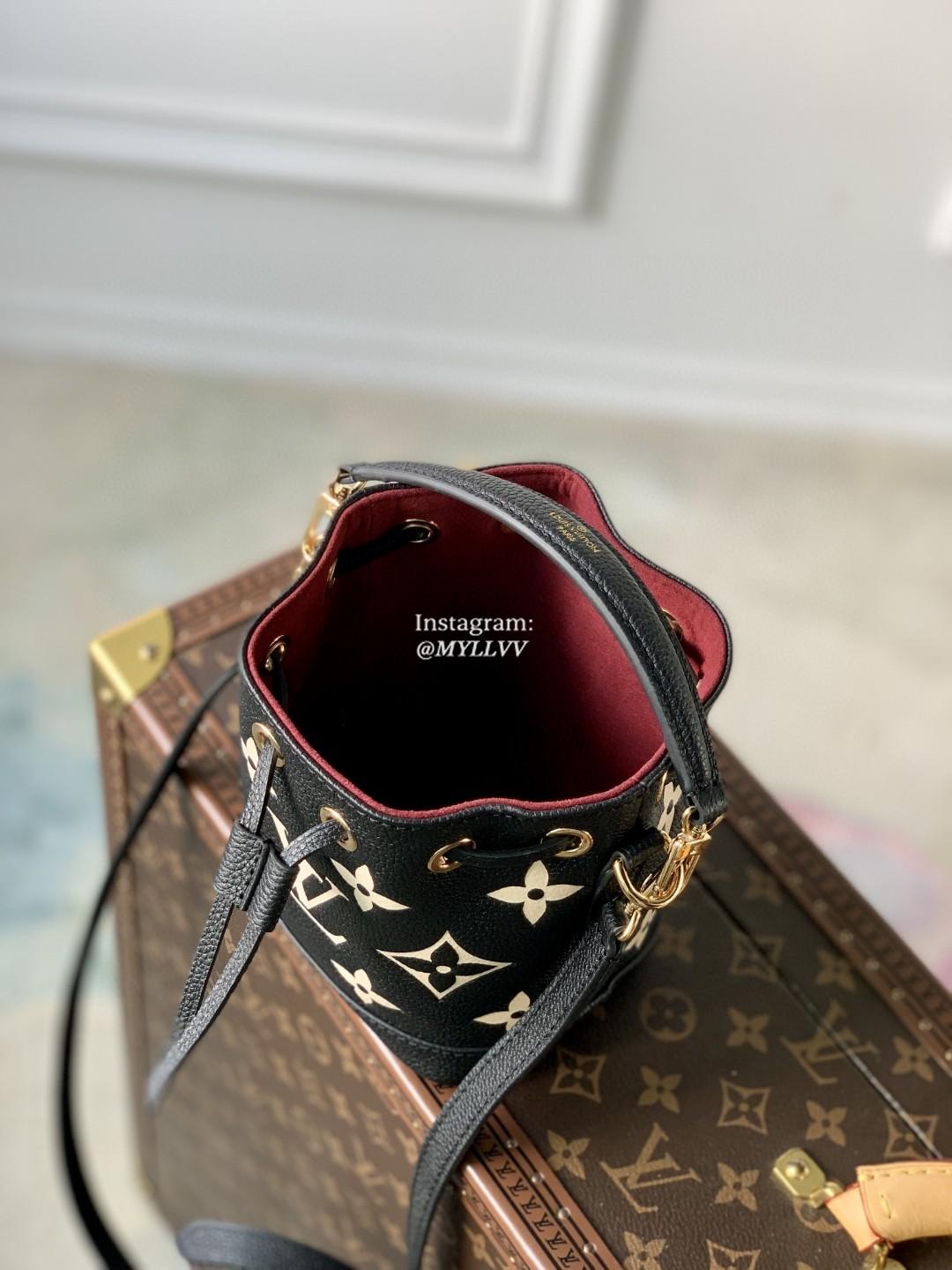 Top Quality Version:MYLLVV » Louis Vuitton Monogram Empreinte Embossed Supple Grained Cowhide Leather Nano Noé Bucket Bag Black M46291