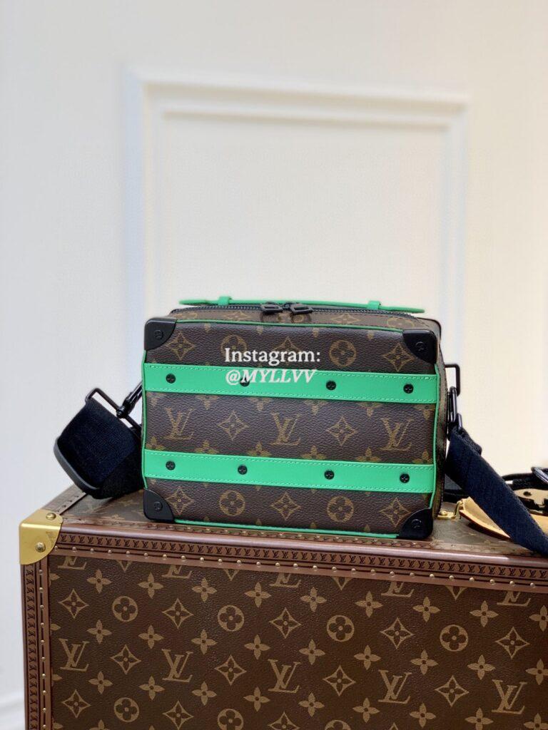 Louis Vuitton Monogram Macassar Coated Canvas And Green Cowhide Leather Handle Soft Trunk Handbag M46264