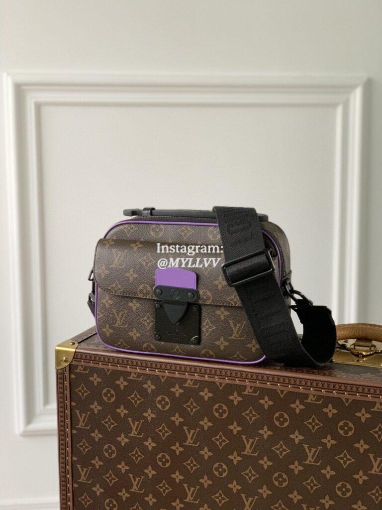 Top Quality Version:MYLLVV » Louis Vuitton Monogram Macassar Coated Canvas And Purple Cowhide Leather S-Lock Messenger Bag M46246