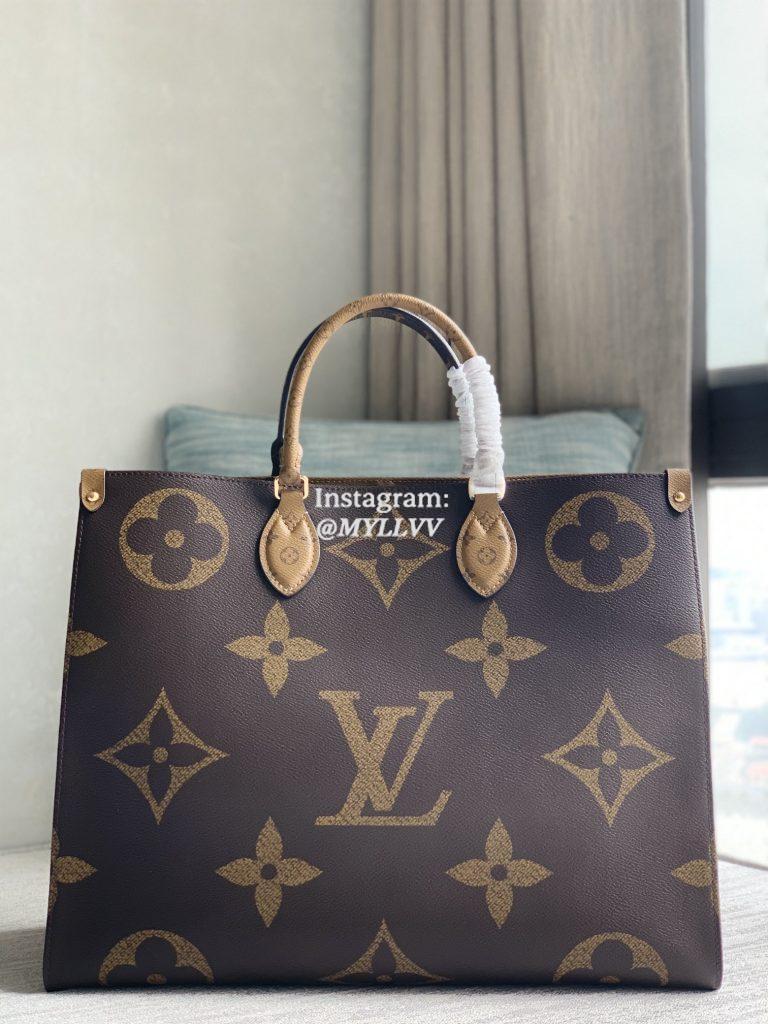Onthego handbag: for work, shopping or weekend travel, pick up onthego handbag and set off immediately. Super large Monogram print is more modern than Mini Monogram trim with abundant interior design.