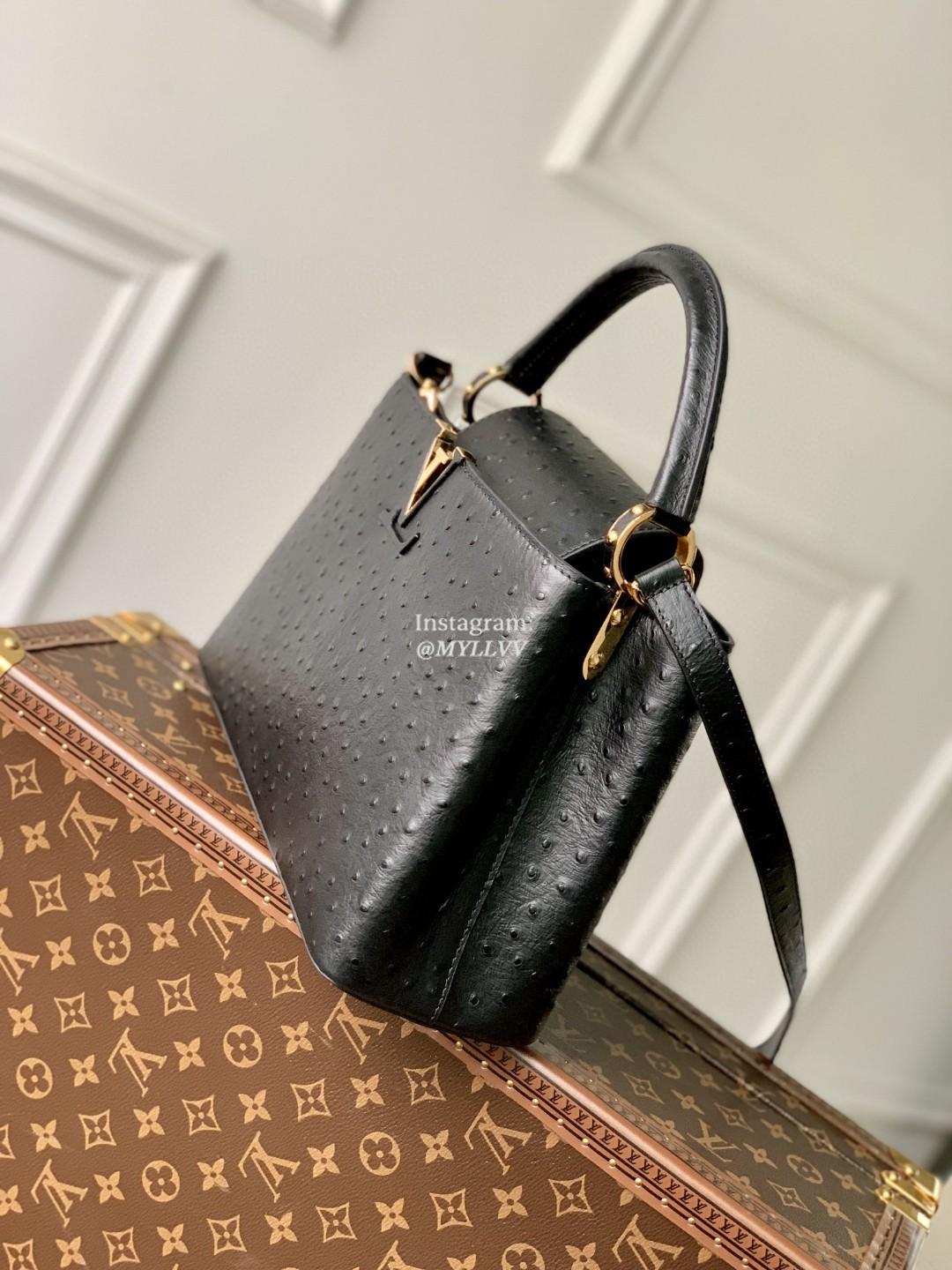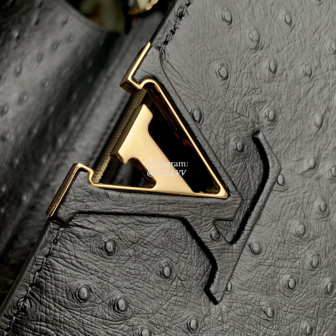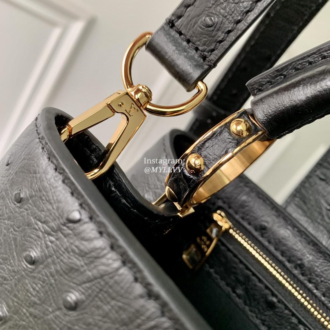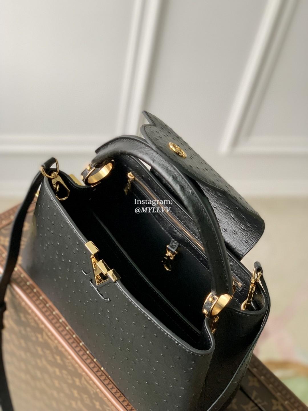 Top Quality Version:MYLLVV » Louis Vuitton Ostrich Pattern Calf Leather Capucines Medium Handbag Black M93483