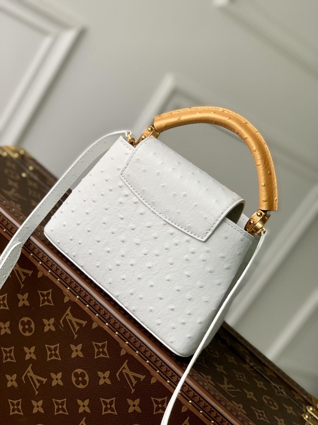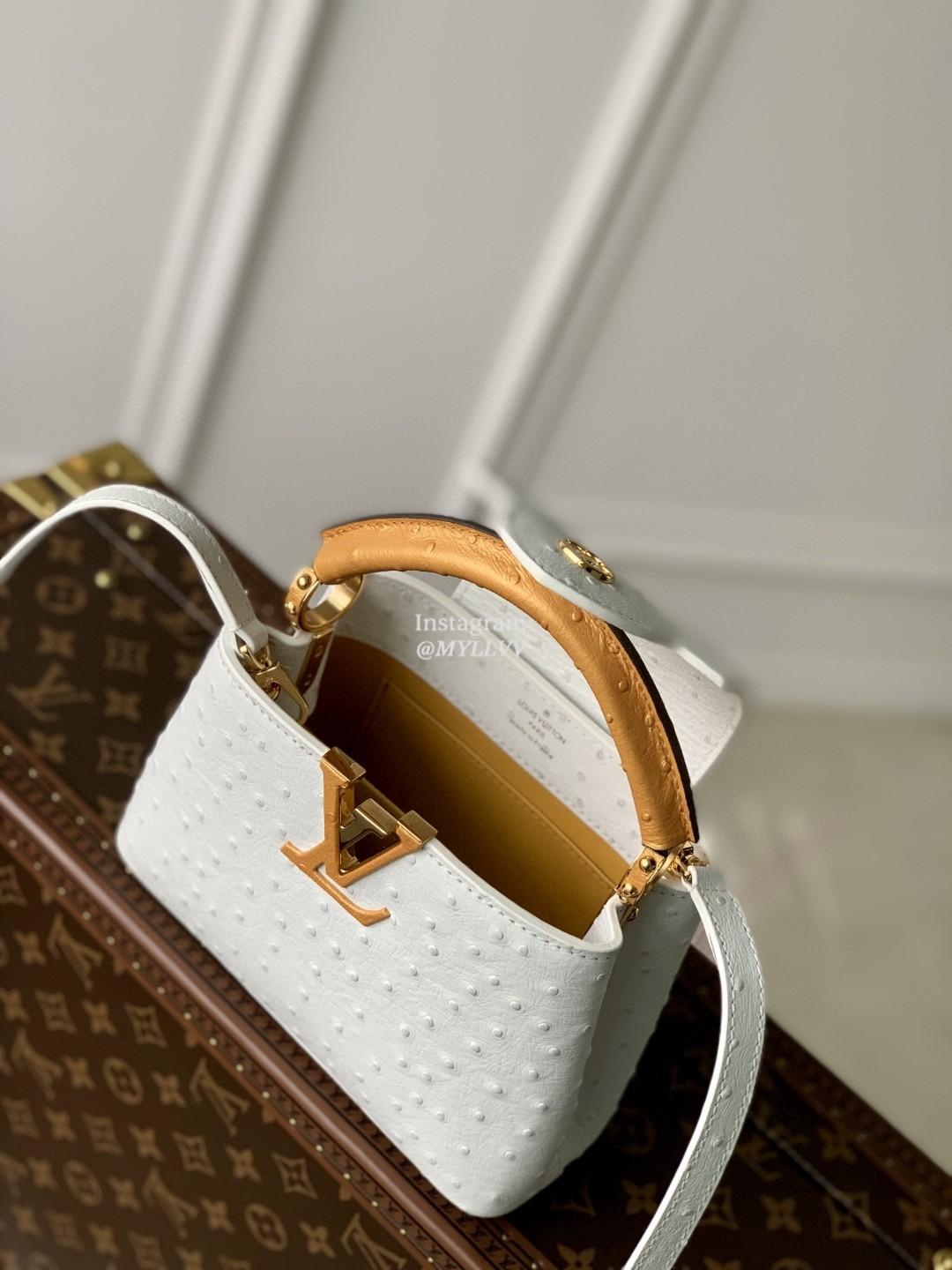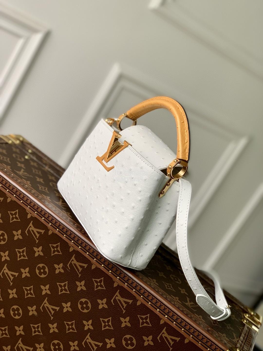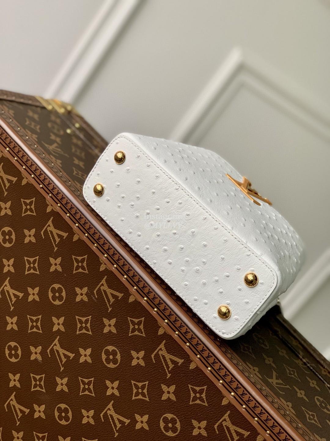 Top Quality Version:MYLLVV » Louis Vuitton Ostrich Pattern Calf Leather Capucines Mini Handbag White M93483