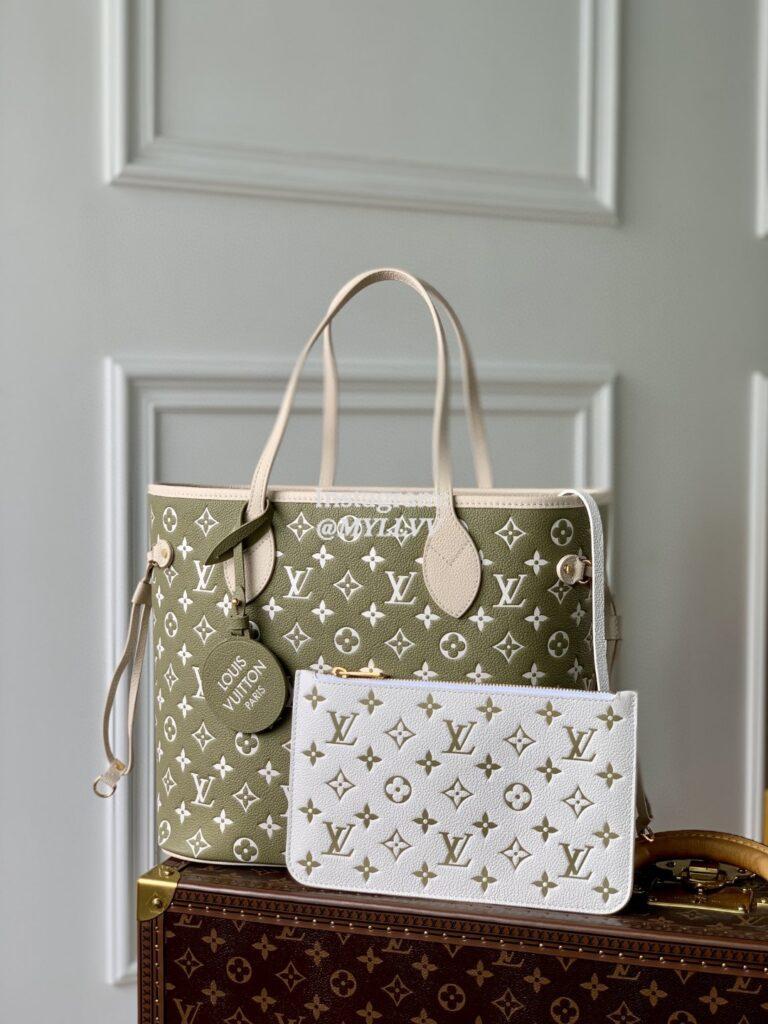 Top Quality Version:MYLLVV » Louis Vuitton Printed And Embossed Grained Cowhide Leather Neverfull MM Tote Bag M46102