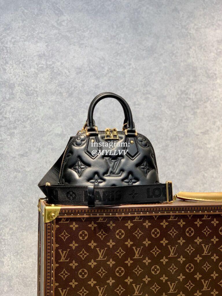 Made from quilted calfskin embroidered with the Monogram motif, the Alma BB handbag is the direct descendant of the Art Deco original from the 1930s. Crafted details like the two rolled-leather top handles complement the puffy leather. Equipped with a removable and adjustable strap, this small bag is perfect for cross-body wear in addition to hand carry.