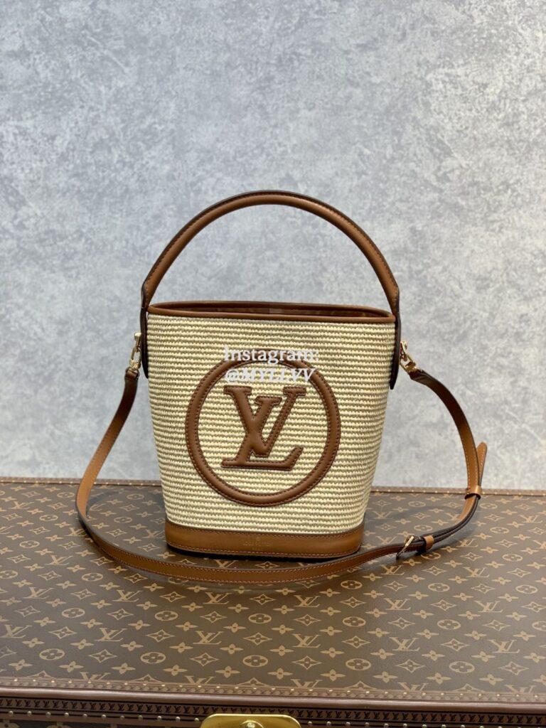 Top Quality Version:MYLLVV » Louis Vuitton Synthetic Knitted Raffia Petit Bucket Bag M59962