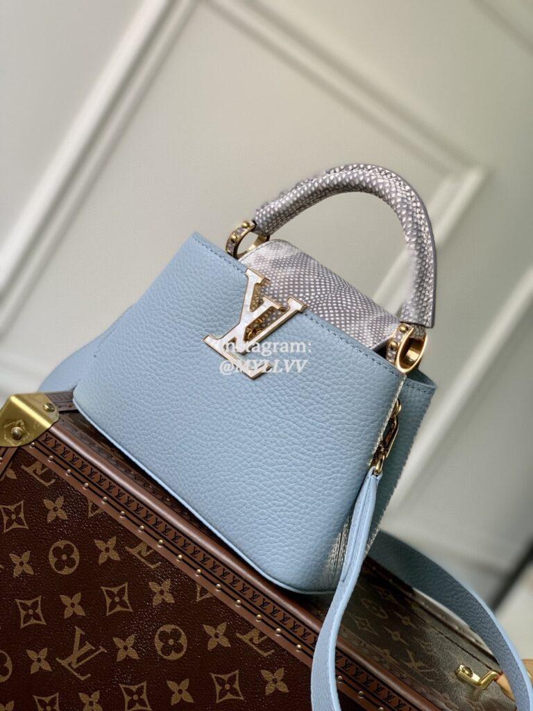 Top Quality Version:MYLLVV » Louis Vuitton Taurillon And Karung Leather Capucines Mini Handbag Blue M21166