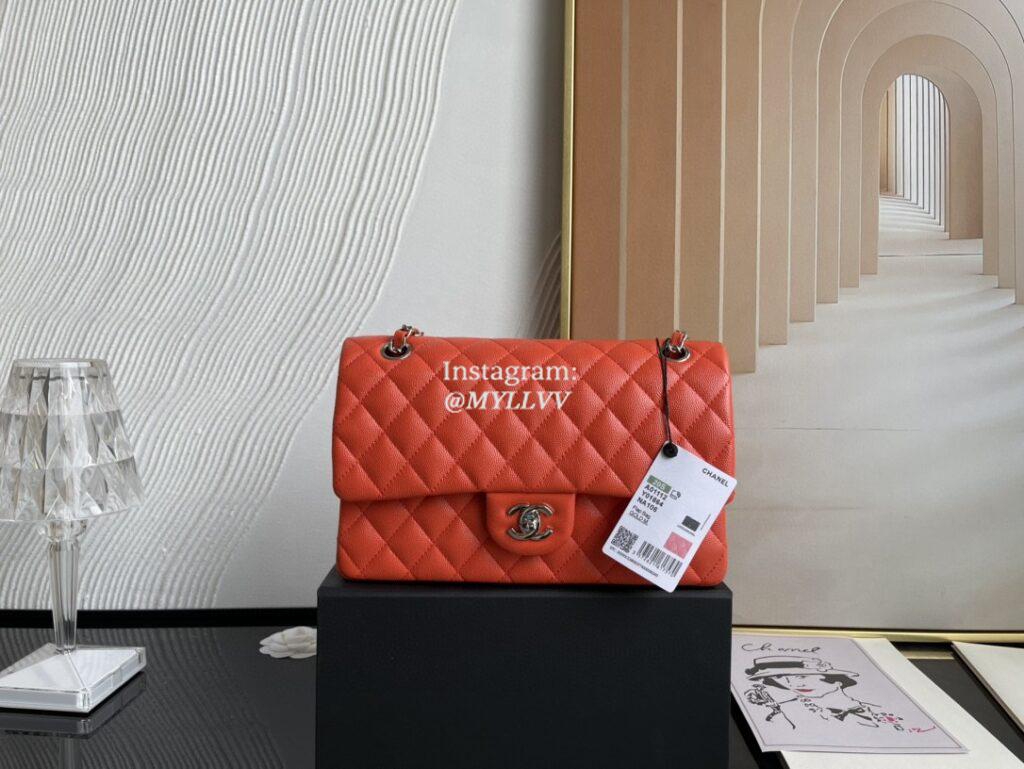 This Capucines hand bag is crafted from Taurillon leather treated with metallic pigments to give the bag an iridescent aspect. In addition to the top handle, there’s an elegant removable chain, braided with the same pearly leather. The Ruthenium finish on the hardware pairs perfectly with the hue of the leather.
