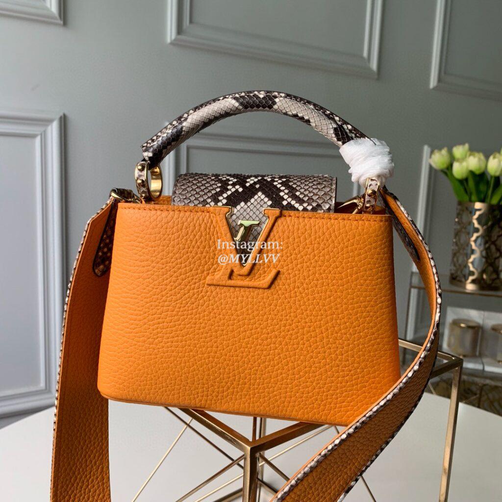 Top Quality Version:MYLLVV » Louis Vuitton Taurillon Leather Capucines MM Handbag Orange N95509