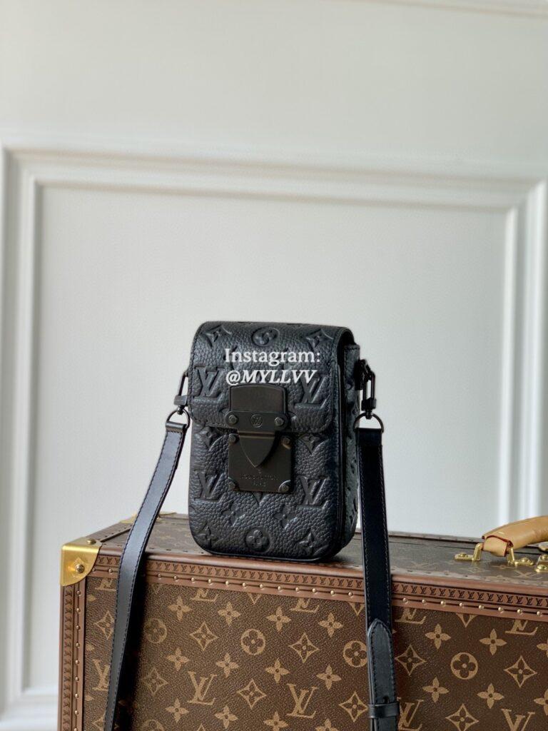 The new S-Lock Vertical wearable wallet now comes in elegant black Taurillon Monogram leather. Top-grade cowhide embossed with Louis Vuitton’s emblematic Monogram pattern is highlighted with heritage touches like the magnetic closure inspired by a historic trunk lock. Compact but large enough for all the daily essentials, it’s the on-trend way to keep personal items close at hand.