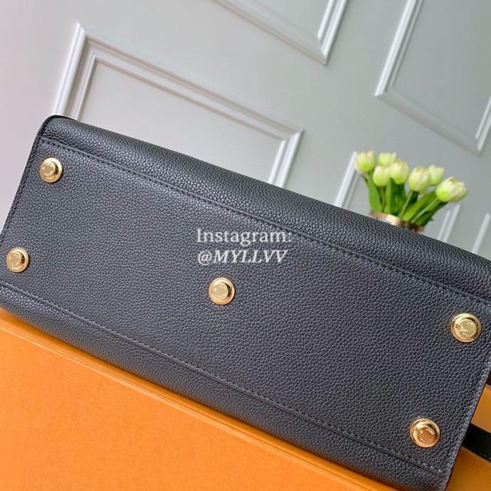 The perfect everyday bag, the On My Side MM tote is made from small-grained calf leather and discreetly signed with side panels in Nappa Softy leather featuring Monogram tufting. Eminently practical, its A4 size and square volume mean there’s room to pack all essentials. It has two leather handles for hand carry and a strap for cross-body wear.