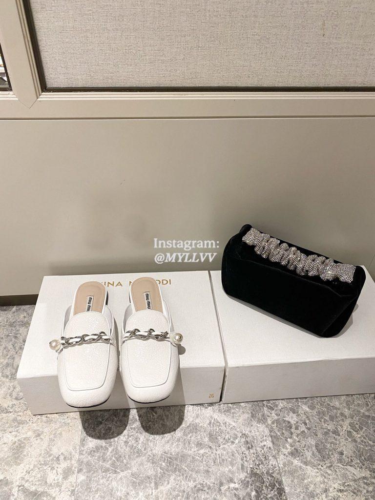 Top Quality Version:MYLLVV » Miumiu 2021 spring and summer new square head pearl chain slippers (White)