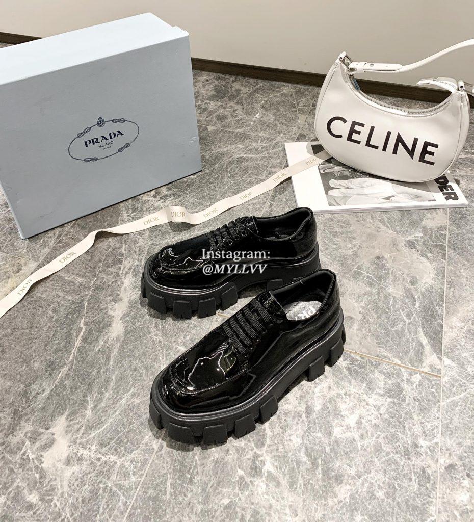 Top Quality Version:MYLLVV » Prada 2021 catwalk hot style platform shoes (Black Patent Leather)