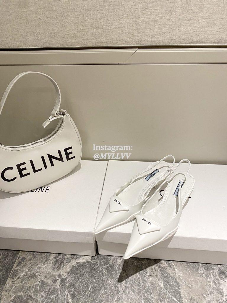 The design of the kitten heel is super comfortable on the foot, and the wrapping feeling of the upper is also quite perfect. The whole is simple and advanced! The iconic logo triangle on the upper! Put on the stylish Prada girl!