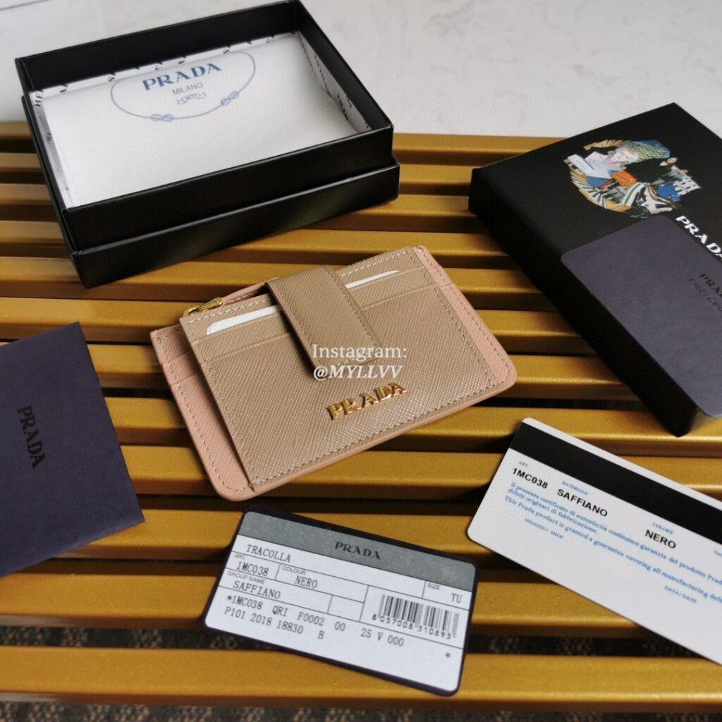 Top Quality Version:MYLLVV » Prada Apricot Saffiano And Leather Card Holder 1MC038