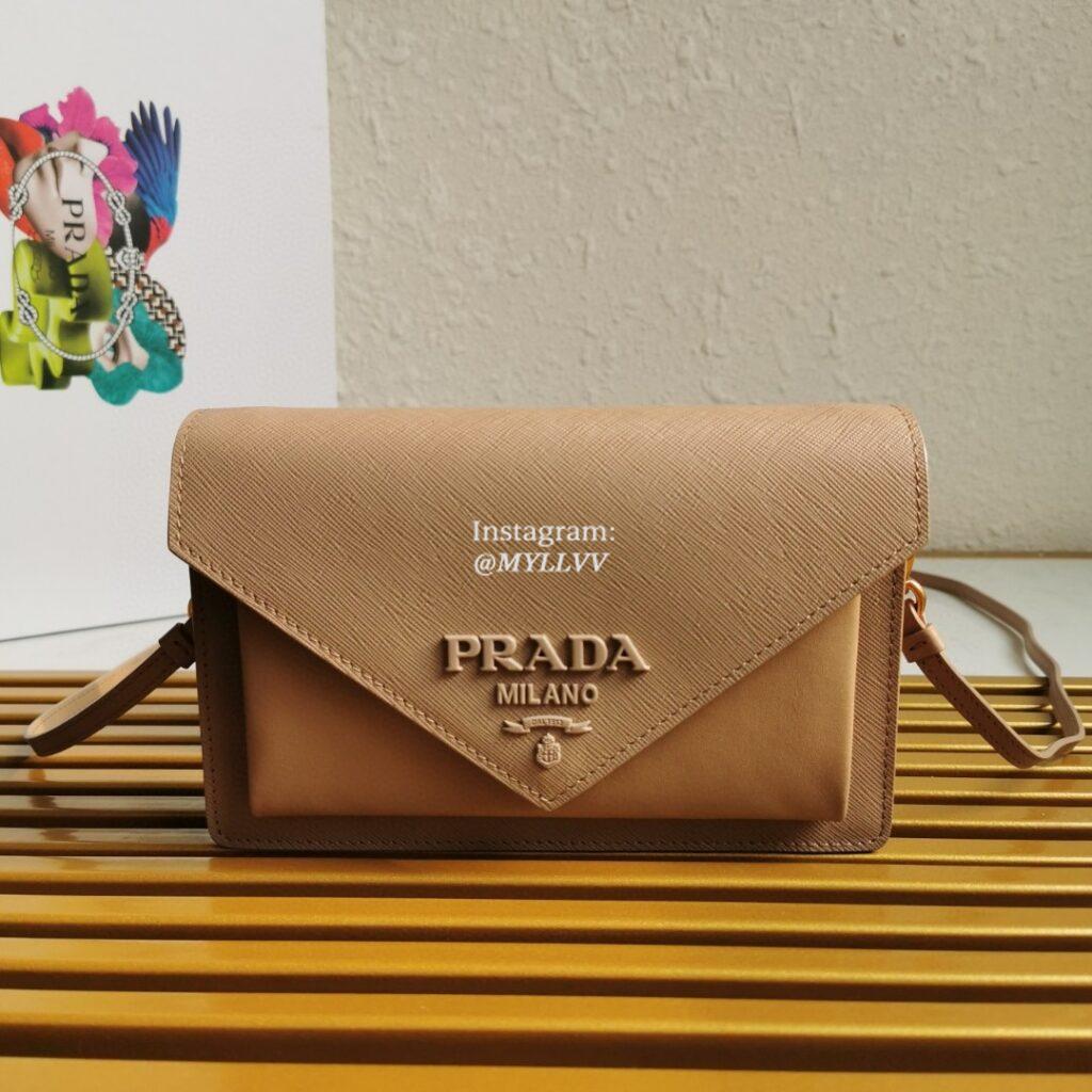 Top Quality Version:MYLLVV » Prada Apricot Saffiano Leather Mini Envelope Bag 1BP020