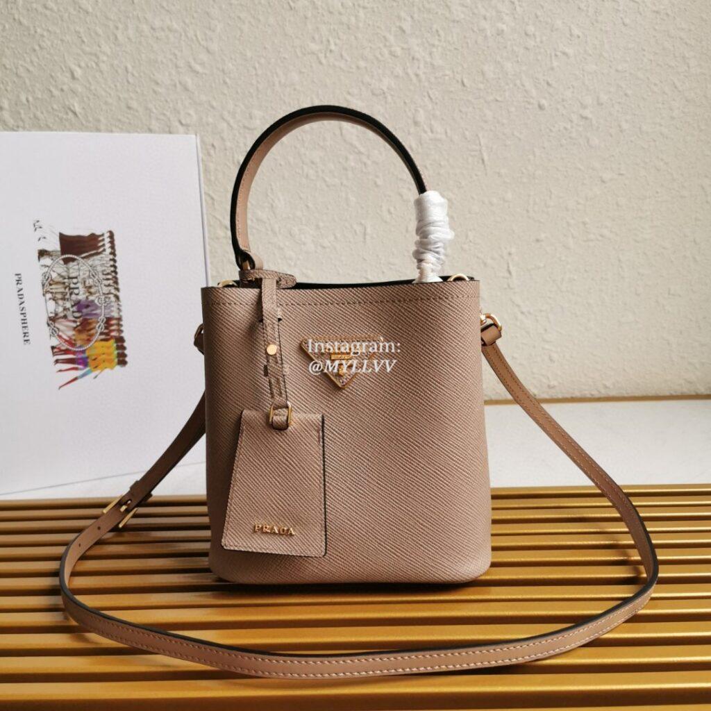 Top Quality Version:MYLLVV » Prada Apricot Small Saffiano Leather Prada Panier Bag 1BA217