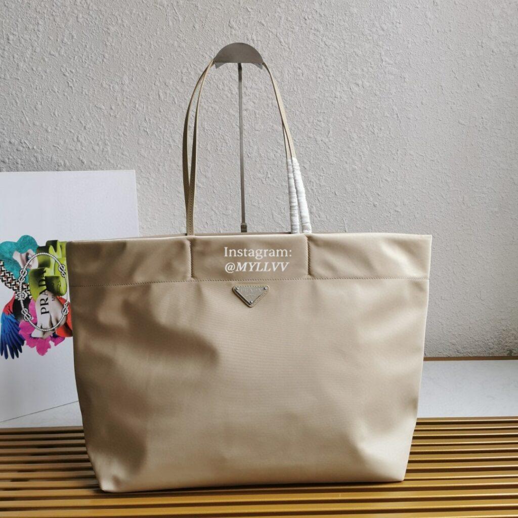 Top Quality Version:MYLLVV » Prada Beige Re-Nylon And Saffiano Leather Tote Bag 1BG107