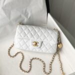 A perfect synthesis of classicism and futurism, the Prada Cleo bag reinterprets an iconic design from the brand’s archives. Sleek, curved lines emphasized by the particular sloping construction on the bottom and sides give this flap bag sophisticated allure, while the handle with extension makes the accessory functional and allows it to be worn as a shoulder bag or handbag. Brushed leather, a distinctive material of Prada collections, is a modern, chameleonic material that is perfect for always new combinations and contrasts. The enameled triangle logo completes the silhouette.