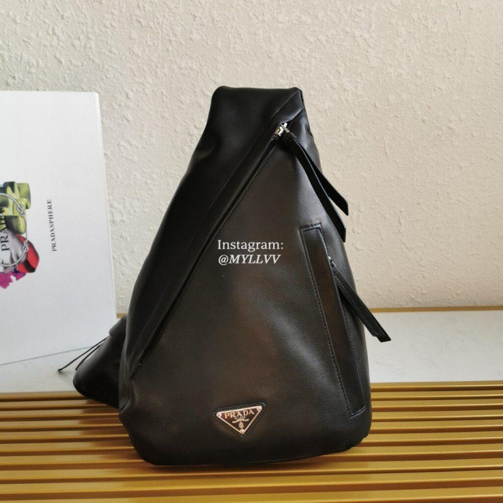 Sleek, minimalist lines are the choice for the new men’s bags for Fall Winter 2021. Defined by its hybrid design, halfway between a backpack and shoulder bag, this accessory has one adjustable woven nylon shoulder strap with side-release buckle and is decorated with the iconic enameled metal triangle logo. The silhouette is made of innovative Re-Nylon, a regenerated yarn produced from recycled plastic trash collected in the ocean.