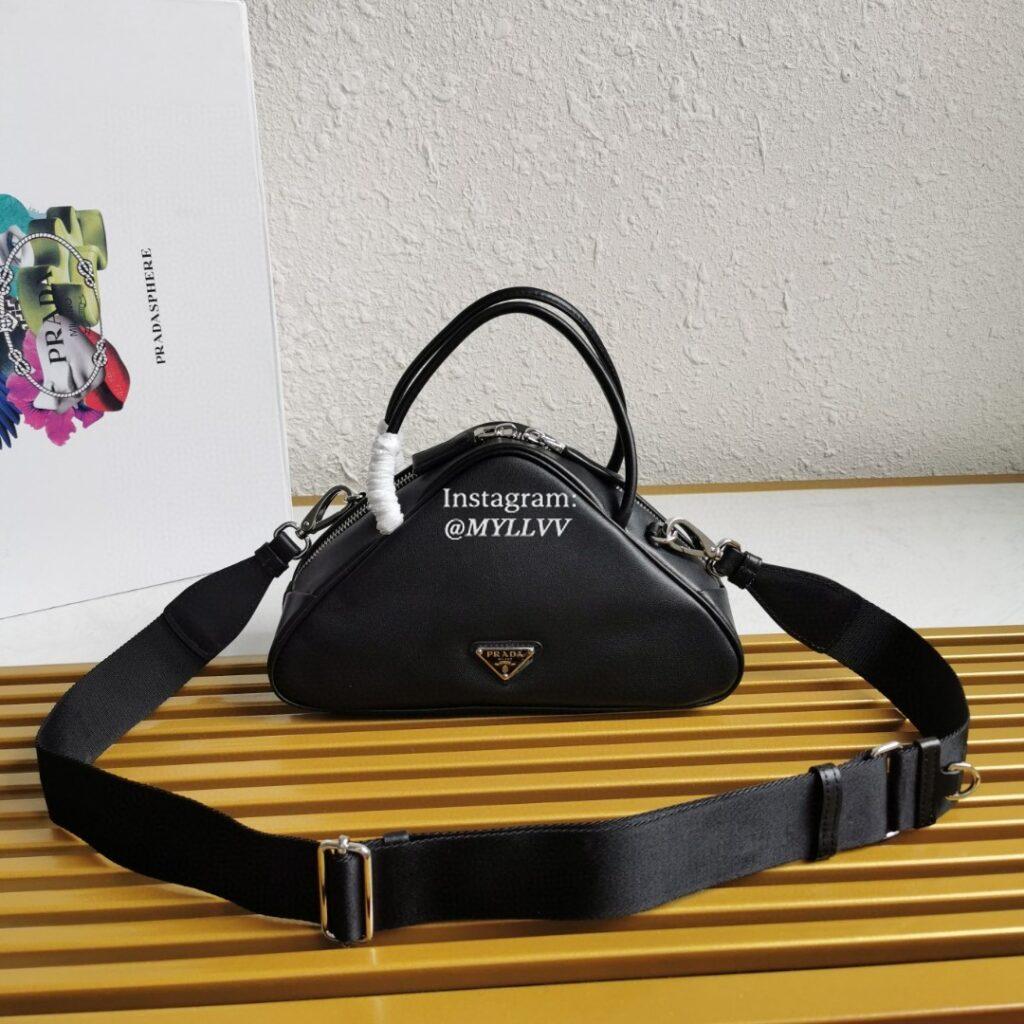 Top Quality Version:MYLLVV » Prada Black Leather Prada Triangle Bag 1BB082