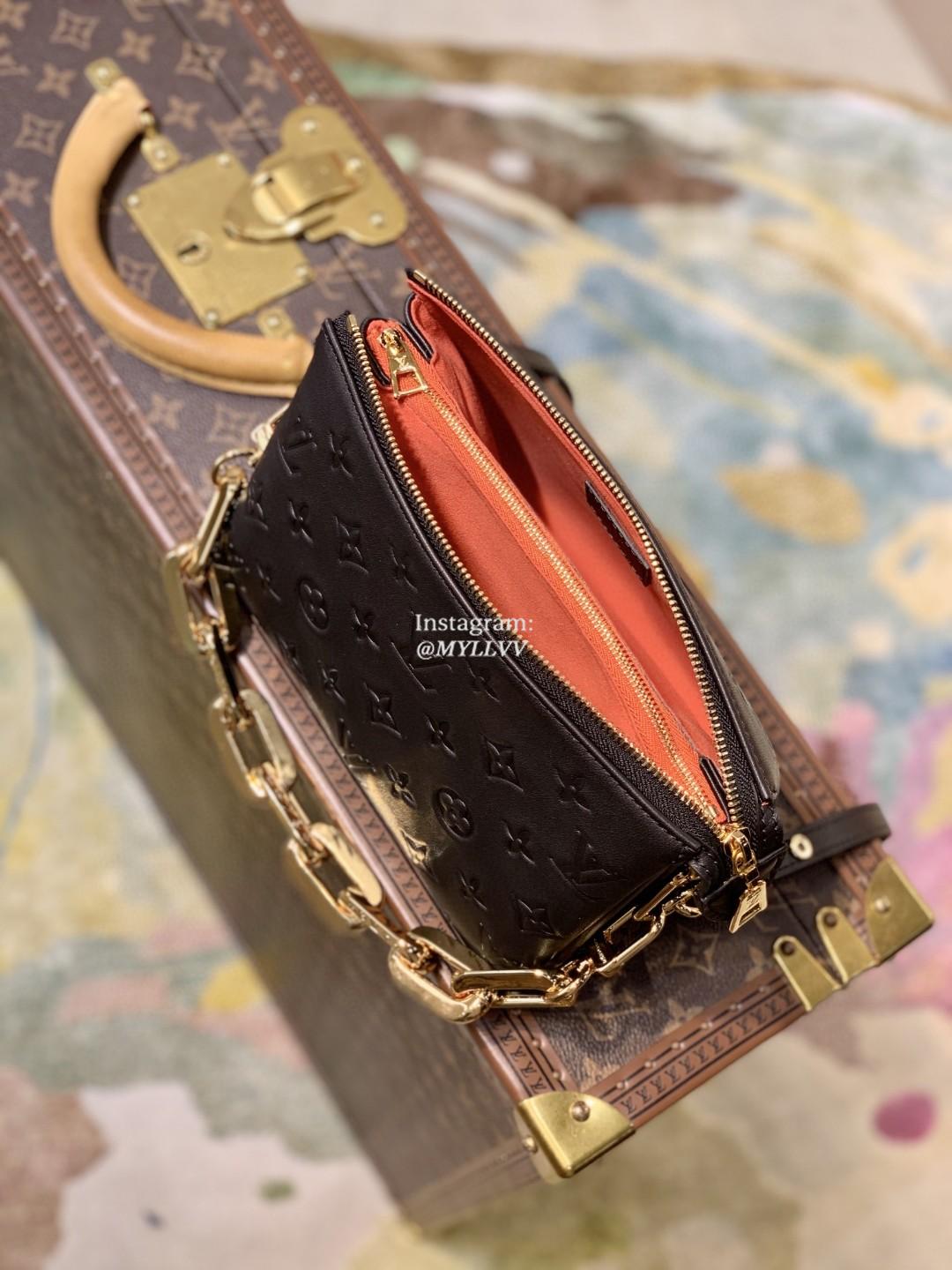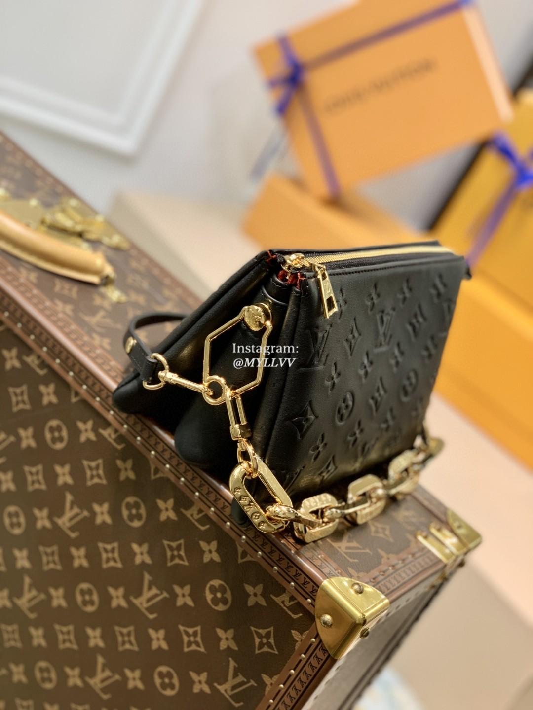 Top Quality Version:MYLLVV » Louis Vuitton Black Monogram Embossed Puffy Lambskin Coussin BB Handbag M57796