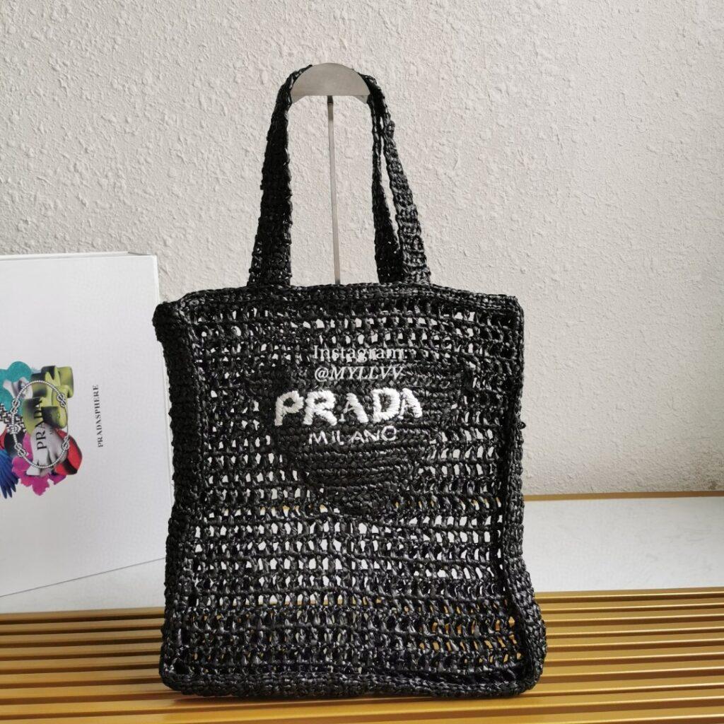 Top Quality Version:MYLLVV » Prada Black Raffia Tote Bag 1BG393