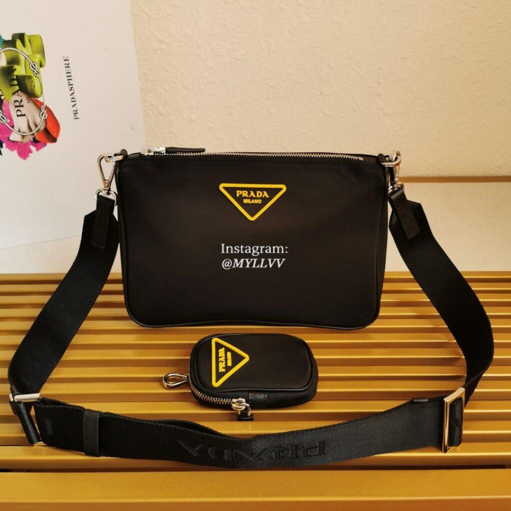 Top Quality Version:MYLLVV » Prada Black Re-Nylon And Saffiano Leather Shoulder Bag 2VH113