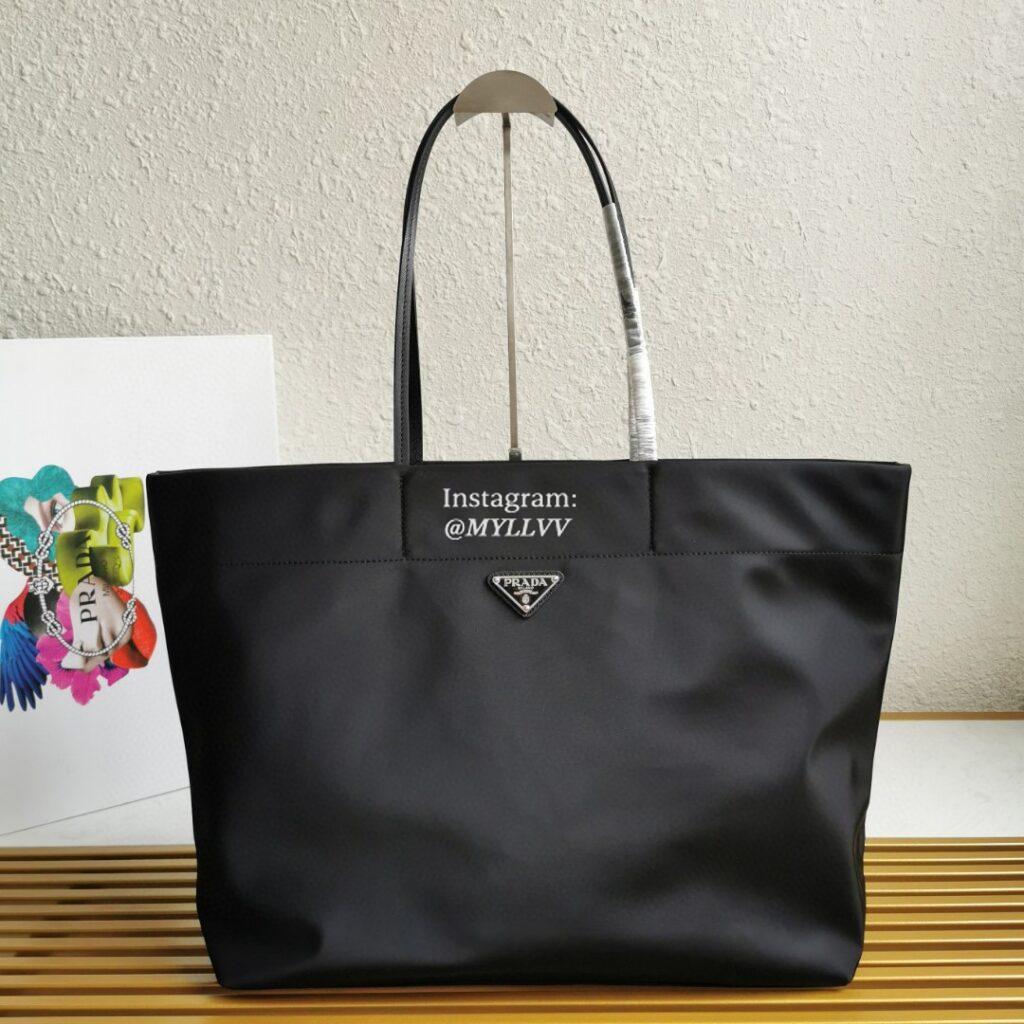 Top Quality Version:MYLLVV » Prada Black Re-Nylon And Saffiano Leather Tote Bag 1BG107