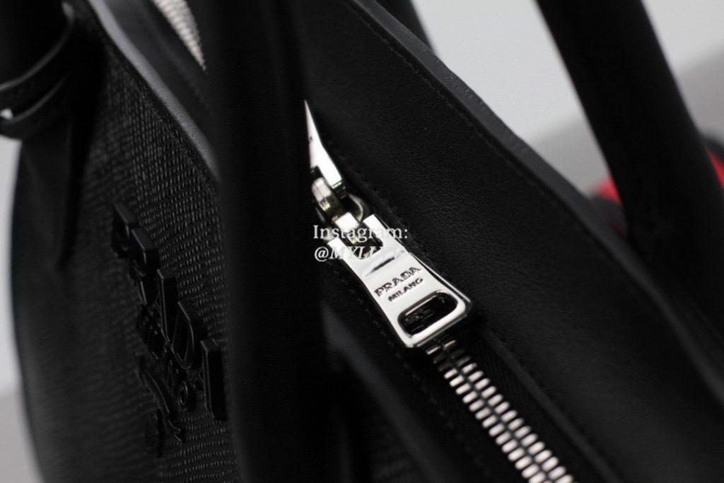 Top Quality Version:MYLLVV » Prada Black Saffiano Leather Double Handle Handbag With A Adjustable Strap For Women 1BA269