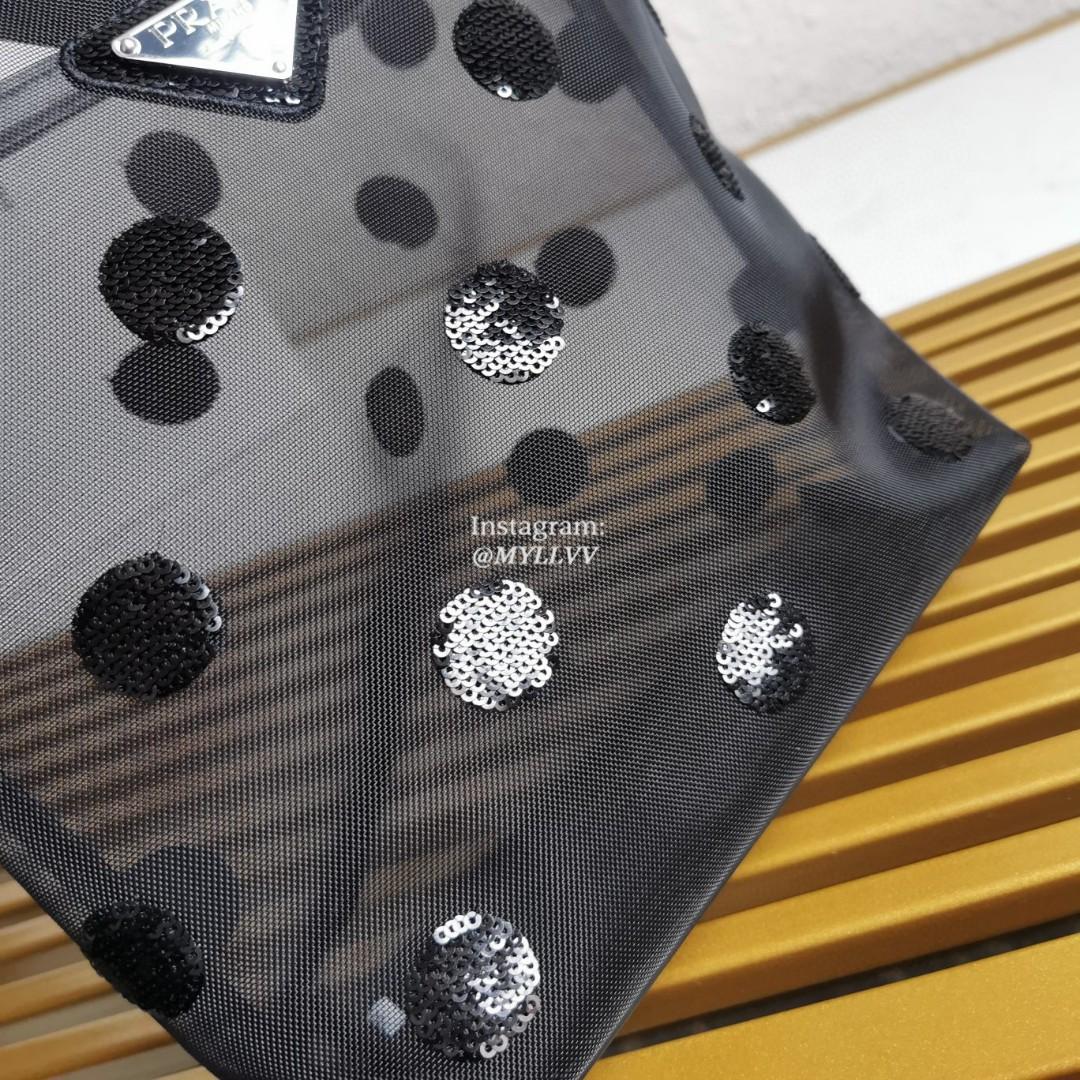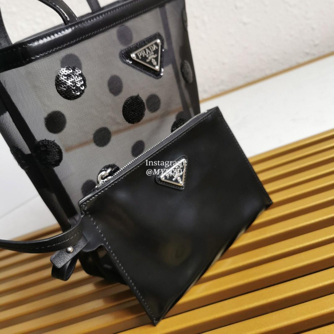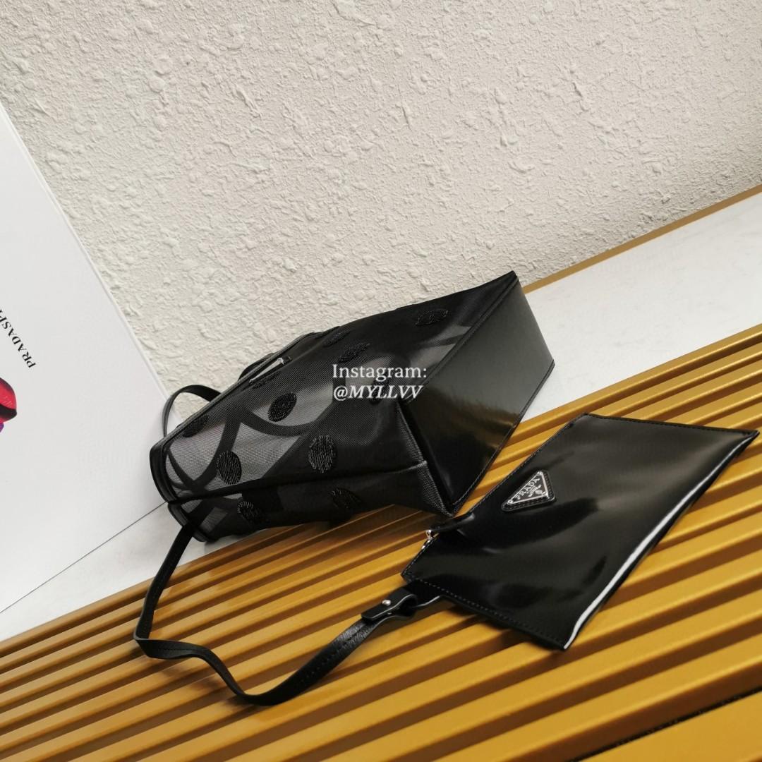Top Quality Version:MYLLVV » Prada Black Small Polka-dot Mesh Tote Bag 1BG417