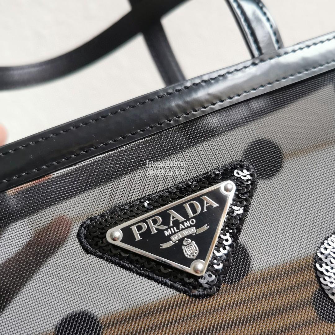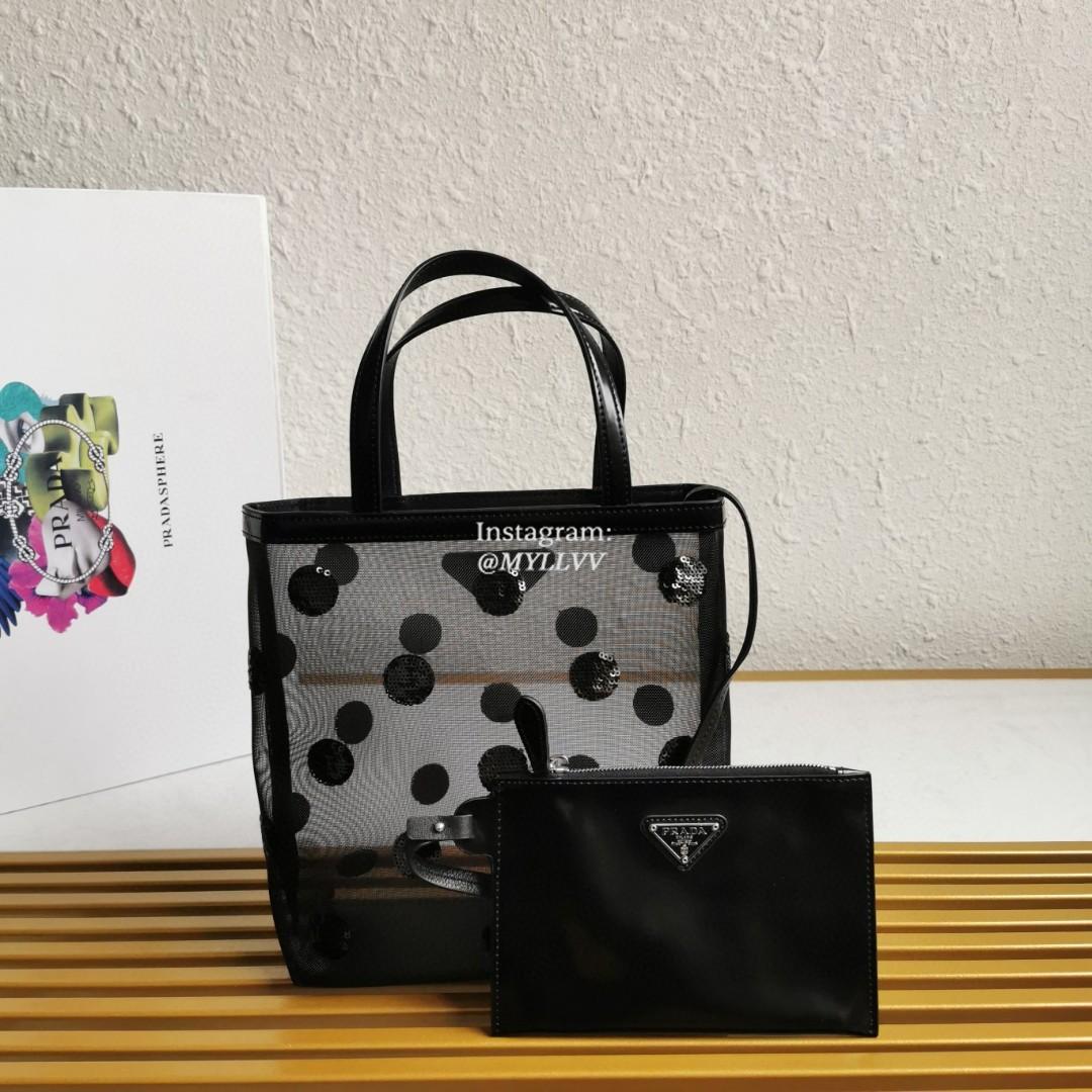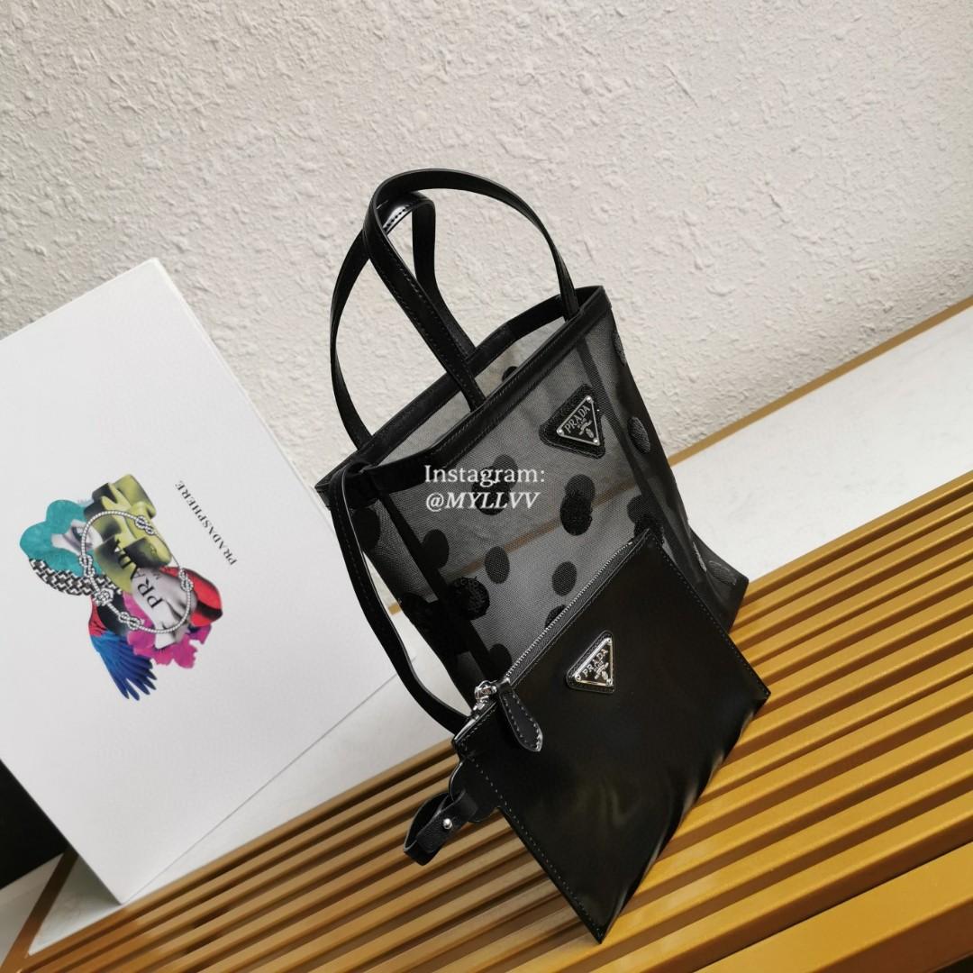 Top Quality Version:MYLLVV » Prada Black Small Polka-dot Mesh Tote Bag 1BG417