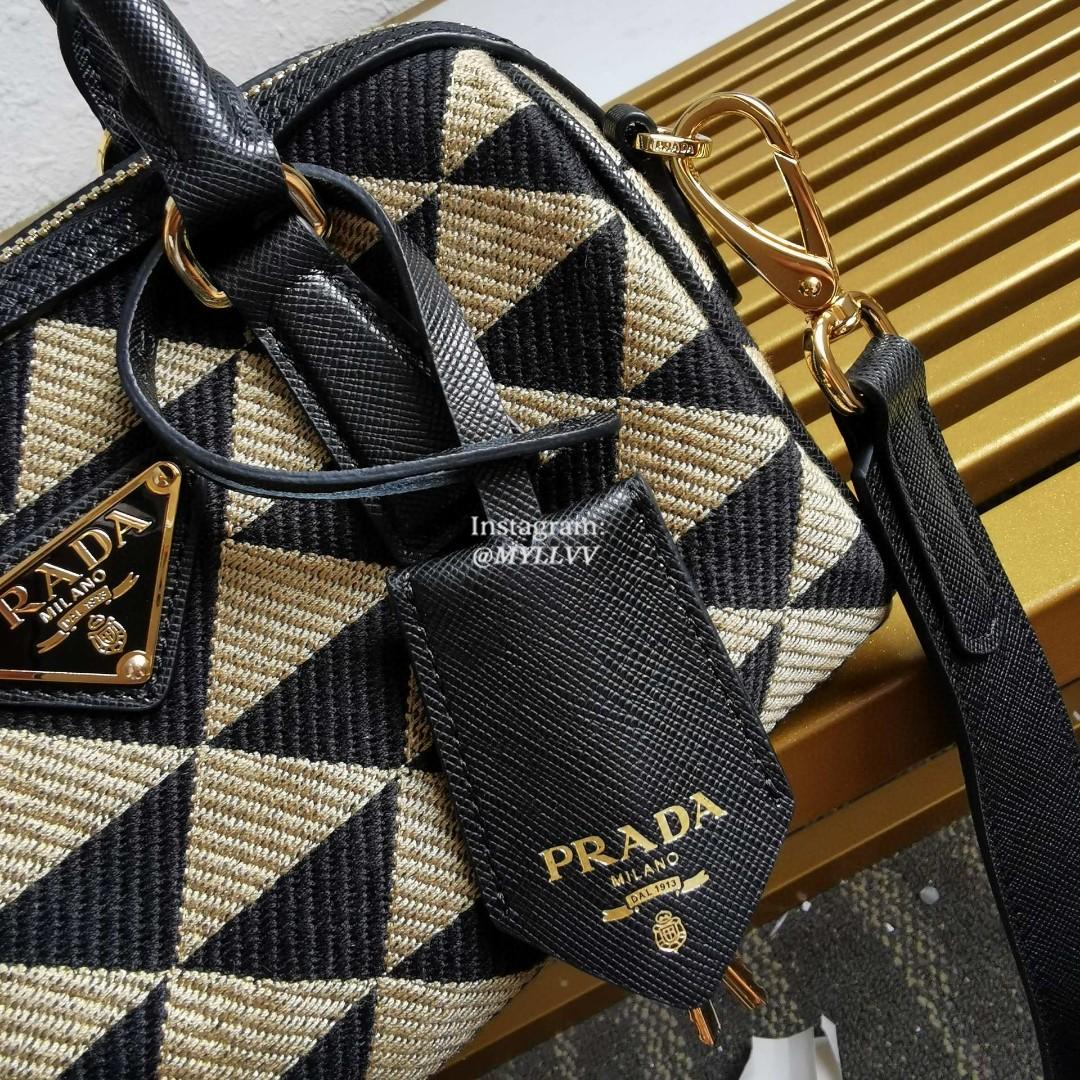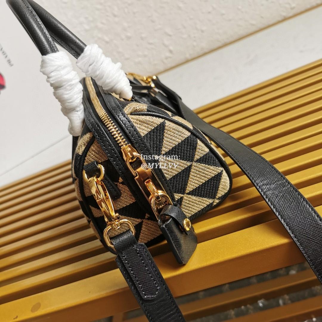 Top Quality Version:MYLLVV » Prada Black Symbole Embroidered Fabric Top-handle Bag 1BB846