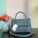Made of fabric with Saffiano handles, this top-handle bag combines a classic silhouette with modern, functional details. Here, the brand’s iconic geometric design is transformed into a sophisticated yet modernist pattern that plays with contrasting colors and decorates this versatile bag.