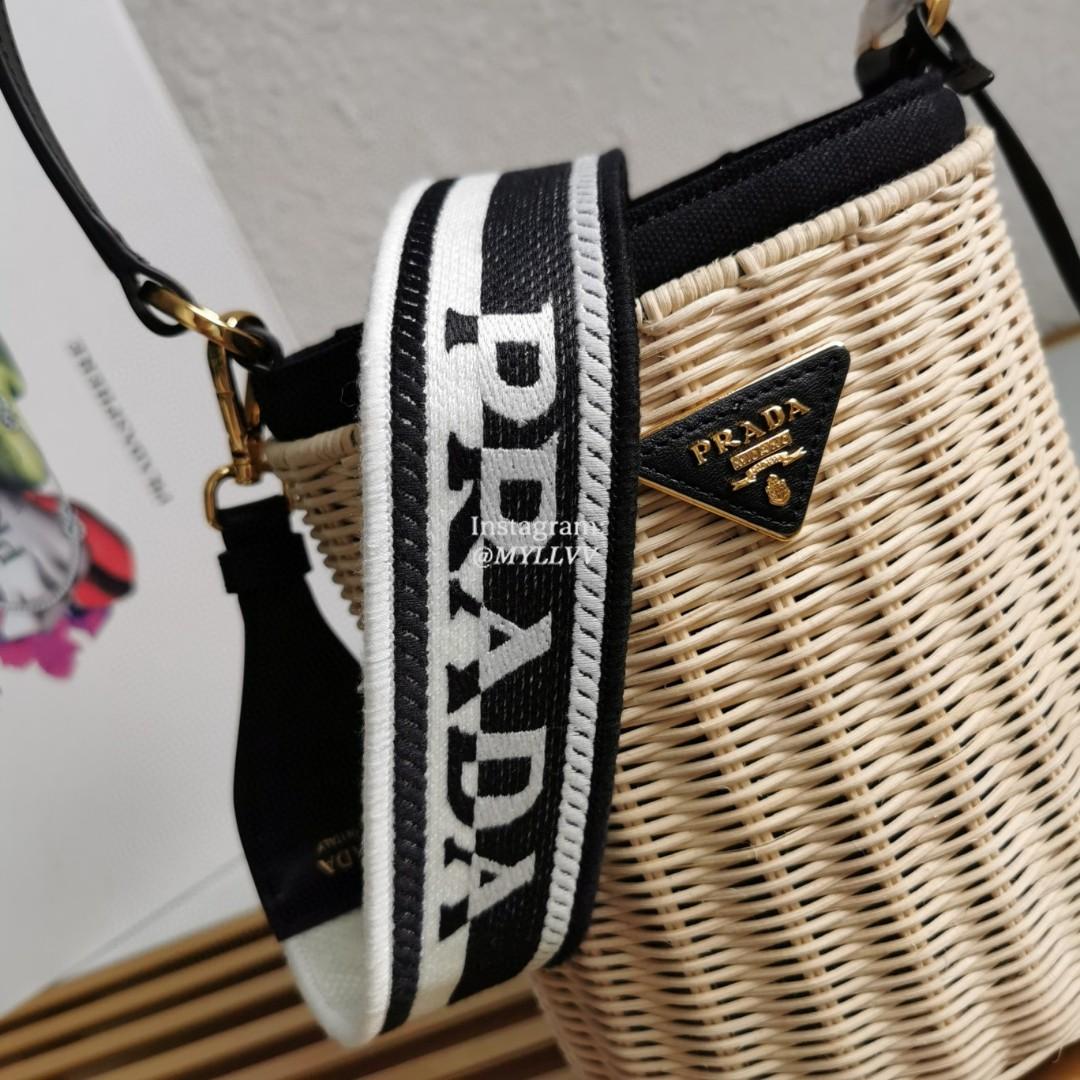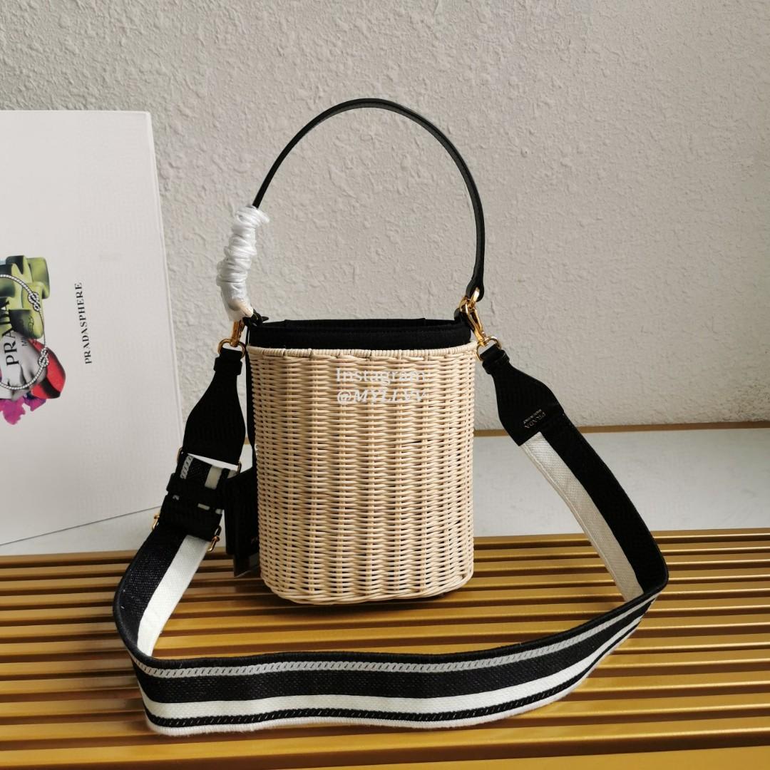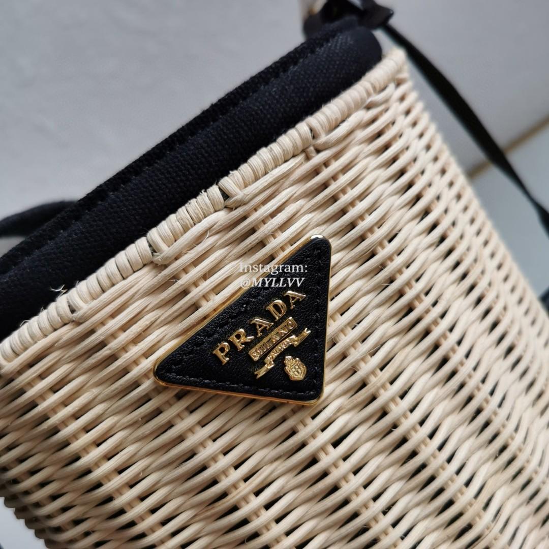 Top Quality Version:MYLLVV » Prada Black Wicker And Canvas Bucket Bag 1BE062