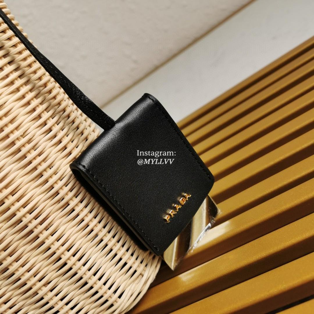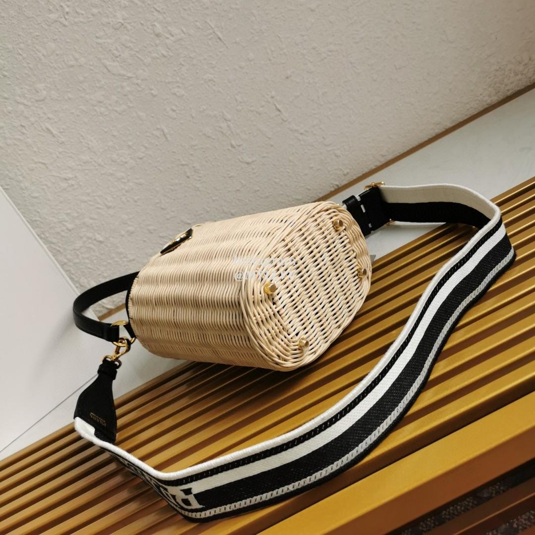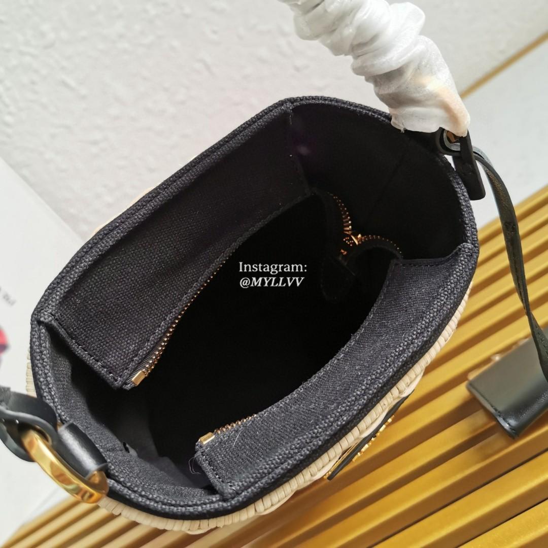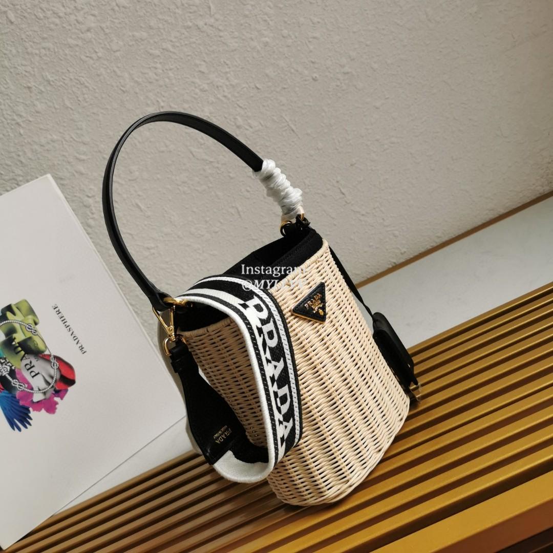 Top Quality Version:MYLLVV » Prada Black Wicker And Canvas Bucket Bag 1BE062