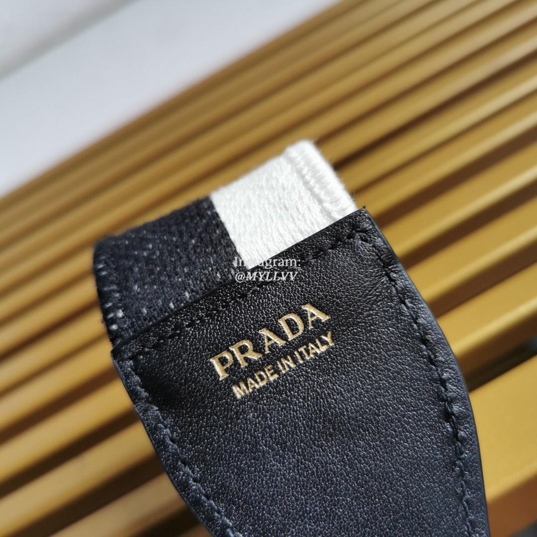 A feminine silhouette, sophisticated details that enhance the design: this shoulder bag is made of wicker and canvas, a mix that characterizes the accessories for the new Prada season. The adjustable embroidered woven tape shoulder strap decorated with the logo in a contrasting color gives the accessory versatility.