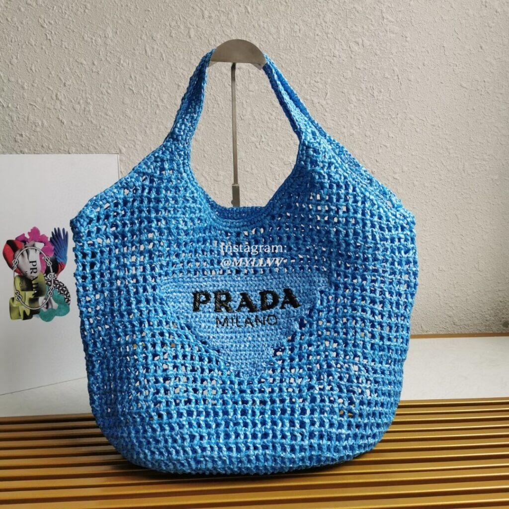 Top Quality Version:MYLLVV » Prada Blue Raffia Tote Bag 1BG424