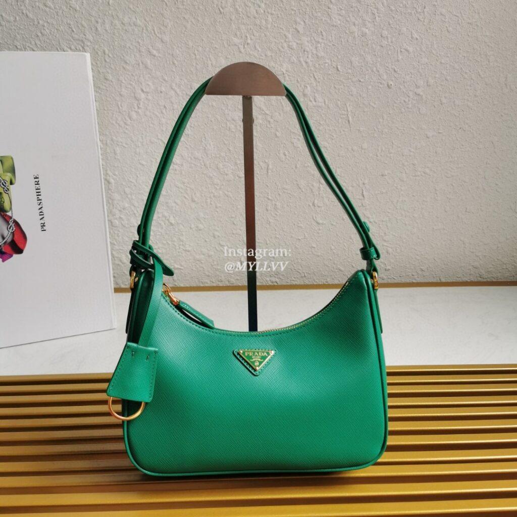 The Prada Cleo bag with sophisticated allure reinterprets an iconic design of the brand from the 1990’s. Sleek curved lines emphasized by the particular construction rounded on the bottom and sides give this hobo bag a soft, light look. Brushed leather, a modern and versatile material that is distinctive in Prada collections, is ideal for creating always new combinations and contrasts. The enamel triangle logo decorates the silhouette.