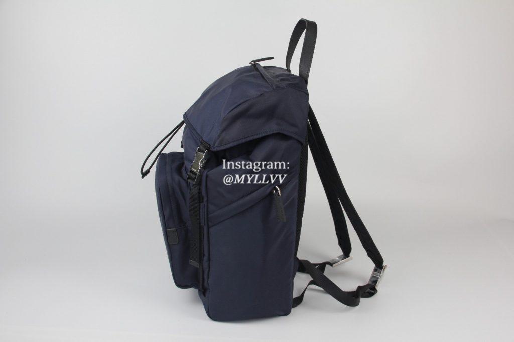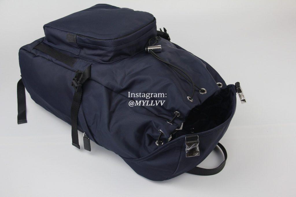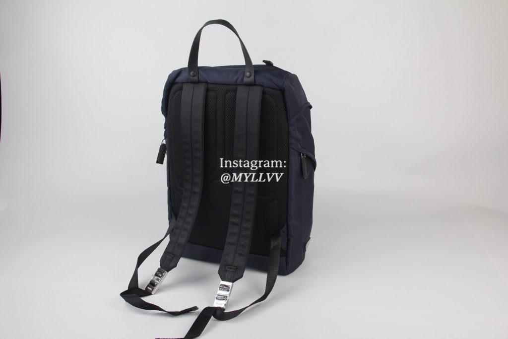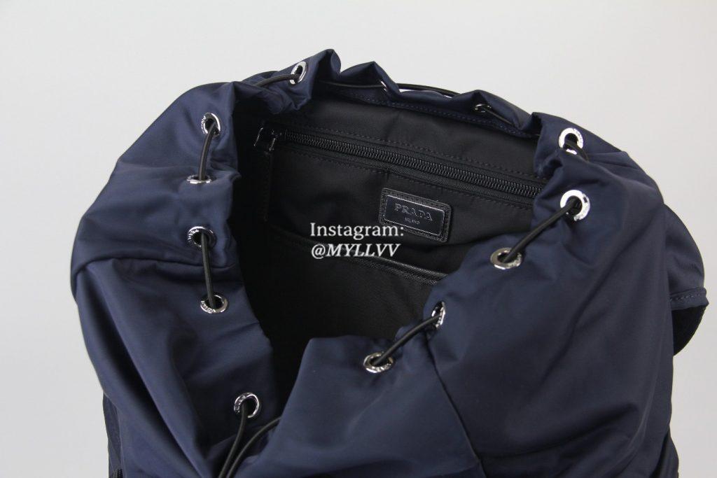 Prada 2vz135 dark blue nylon backpack, mesh pad backpack, silver hardware, comfortable and adjustable wide straps, elastic buckle at the pocket, leather carrying handle, double inner pouch
