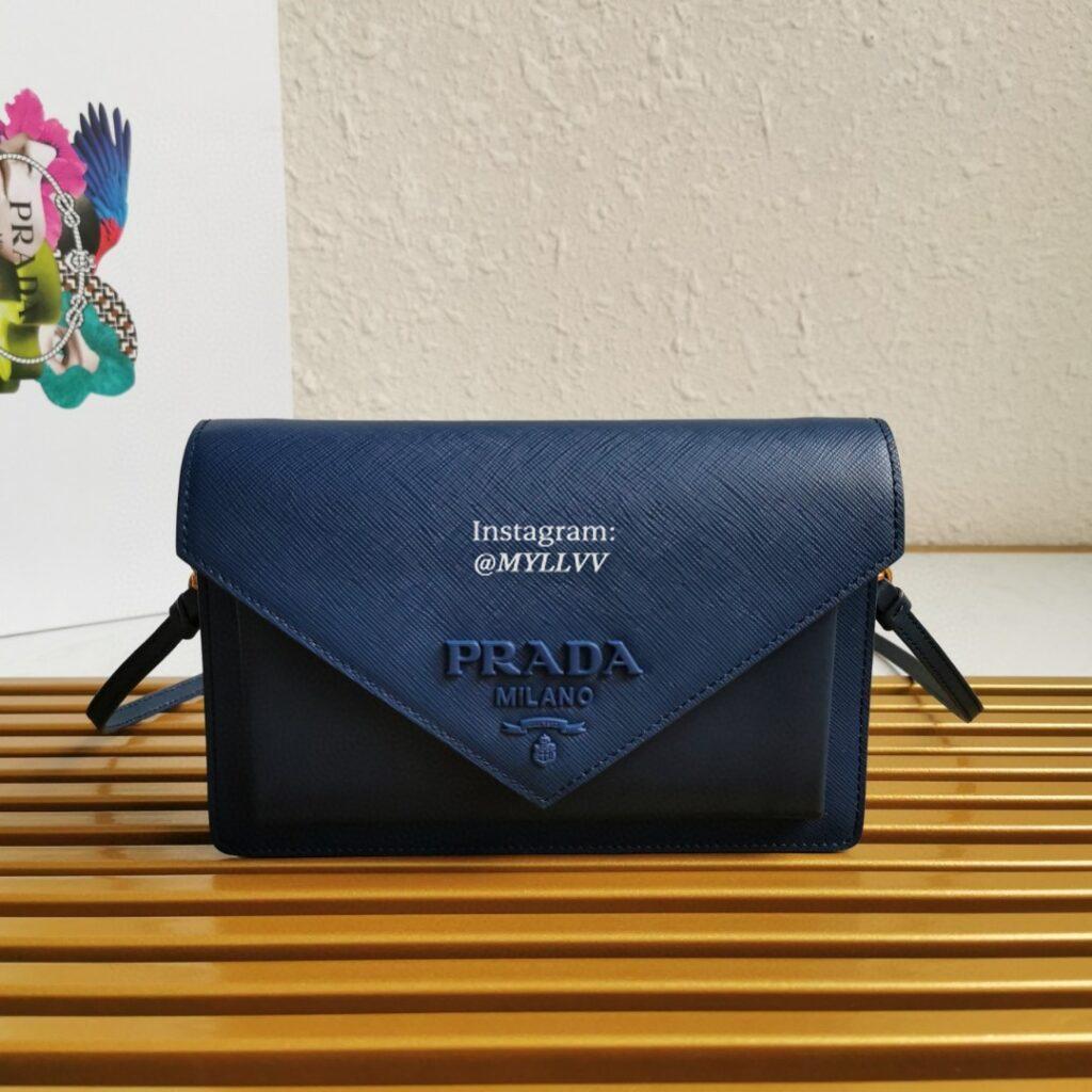 Top Quality Version:MYLLVV » Prada Dark Blue Saffiano Leather Mini Envelope Bag 1BP020
