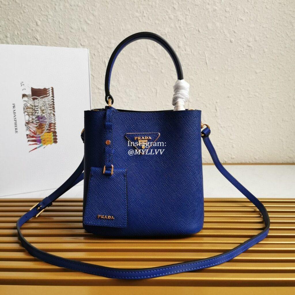 Top Quality Version:MYLLVV » Prada Dark Blue Small Saffiano Leather Prada Panier Bag 1BA217