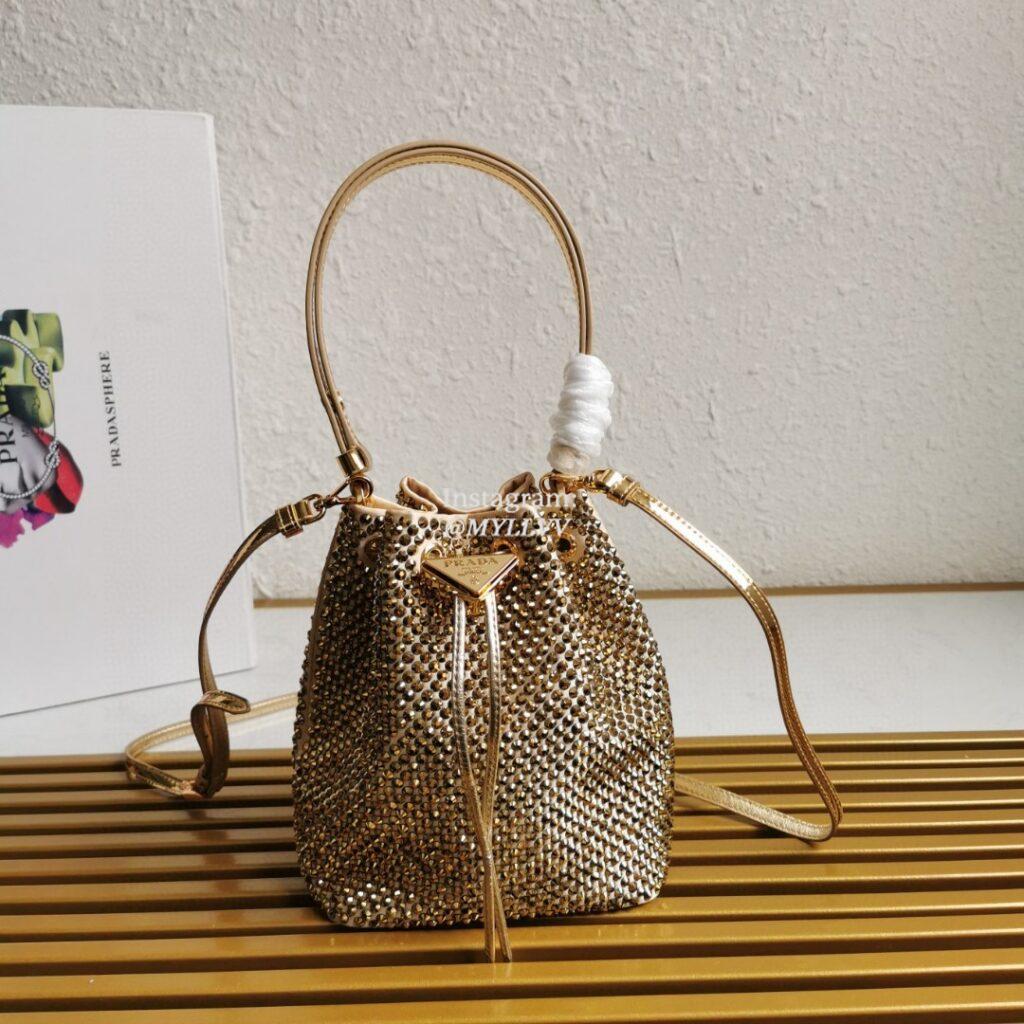 The iconic texture of Saffiano leather characterizes the compact Prada Panier bag. The elegant design of the bag with single handle is distinguished for the strap closure on the top.