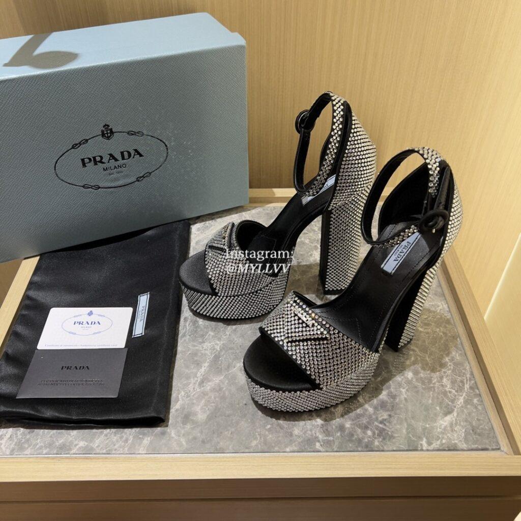 Top Quality Version:MYLLVV » Prada Diamonds Silk And Satin Lambskin High Heel Sandals Black
