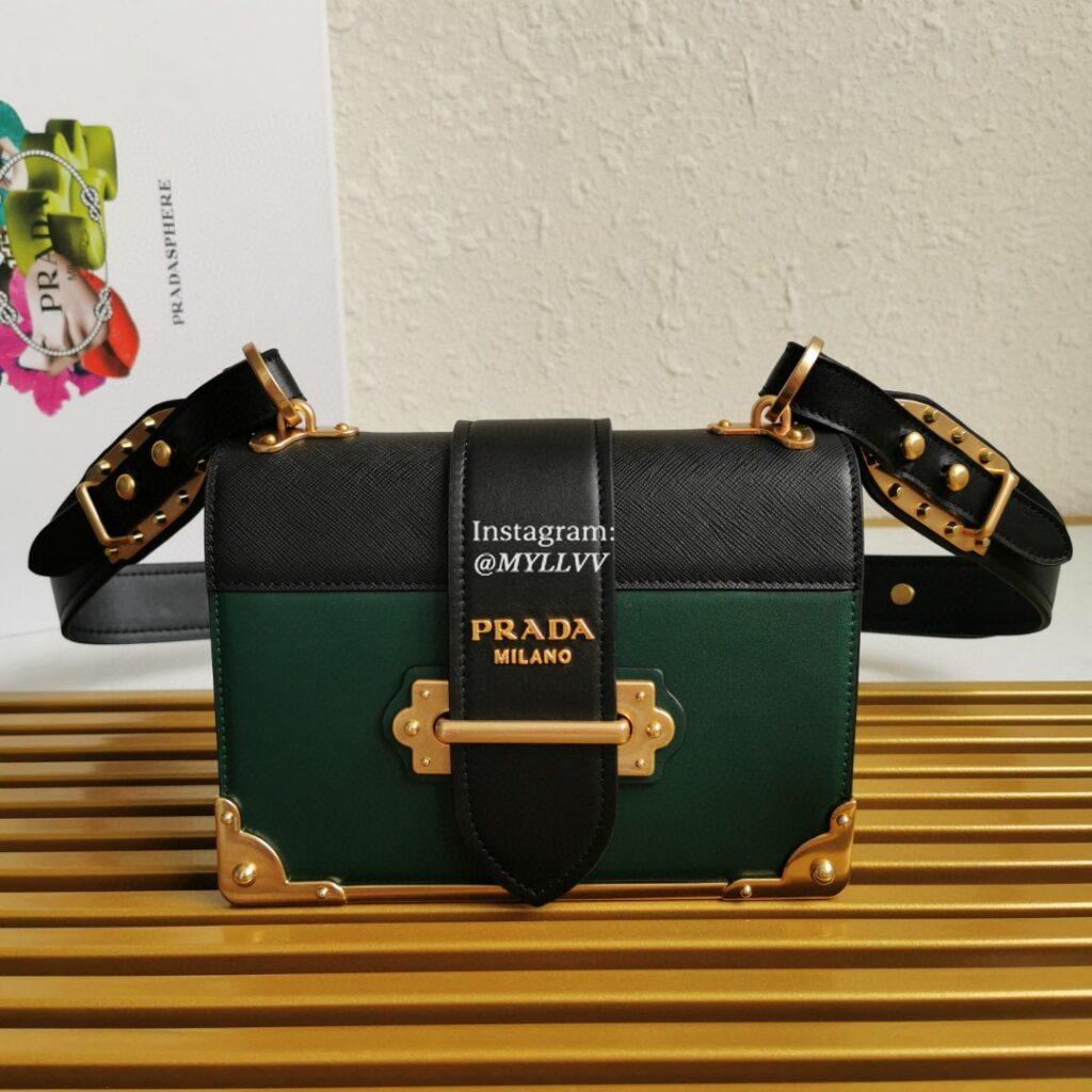 Top Quality Version:MYLLVV » Prada Green Cahier Leather Bag 1BD045
