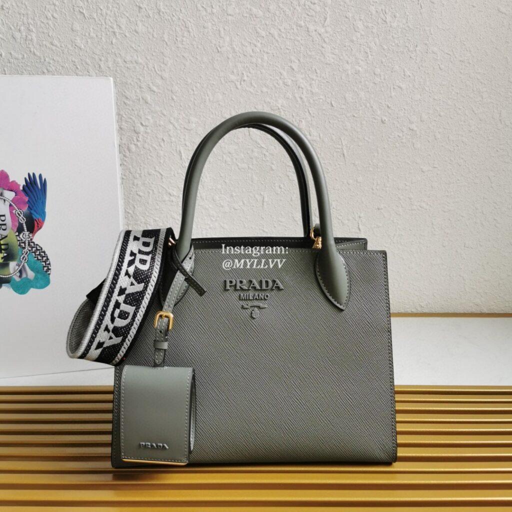 Top Quality Version:MYLLVV » Prada Grey Monochrome Small Saffiano Bag 1BA156