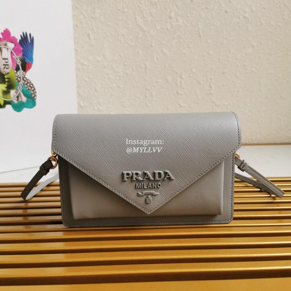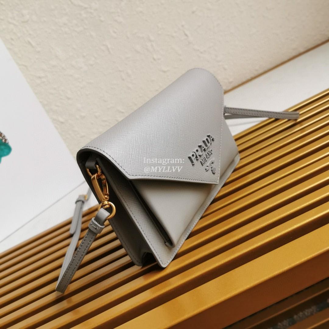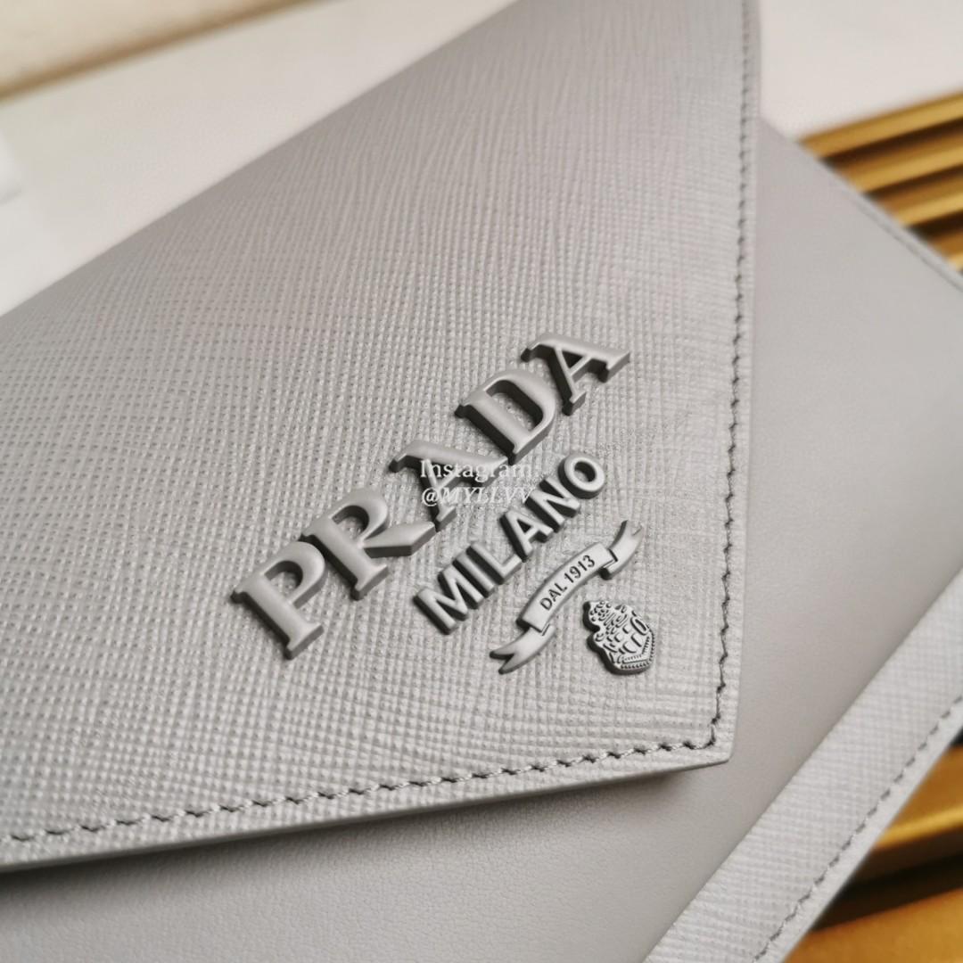 Top Quality Version:MYLLVV » Prada Grey Saffiano Leather Mini Envelope Bag 1BP020