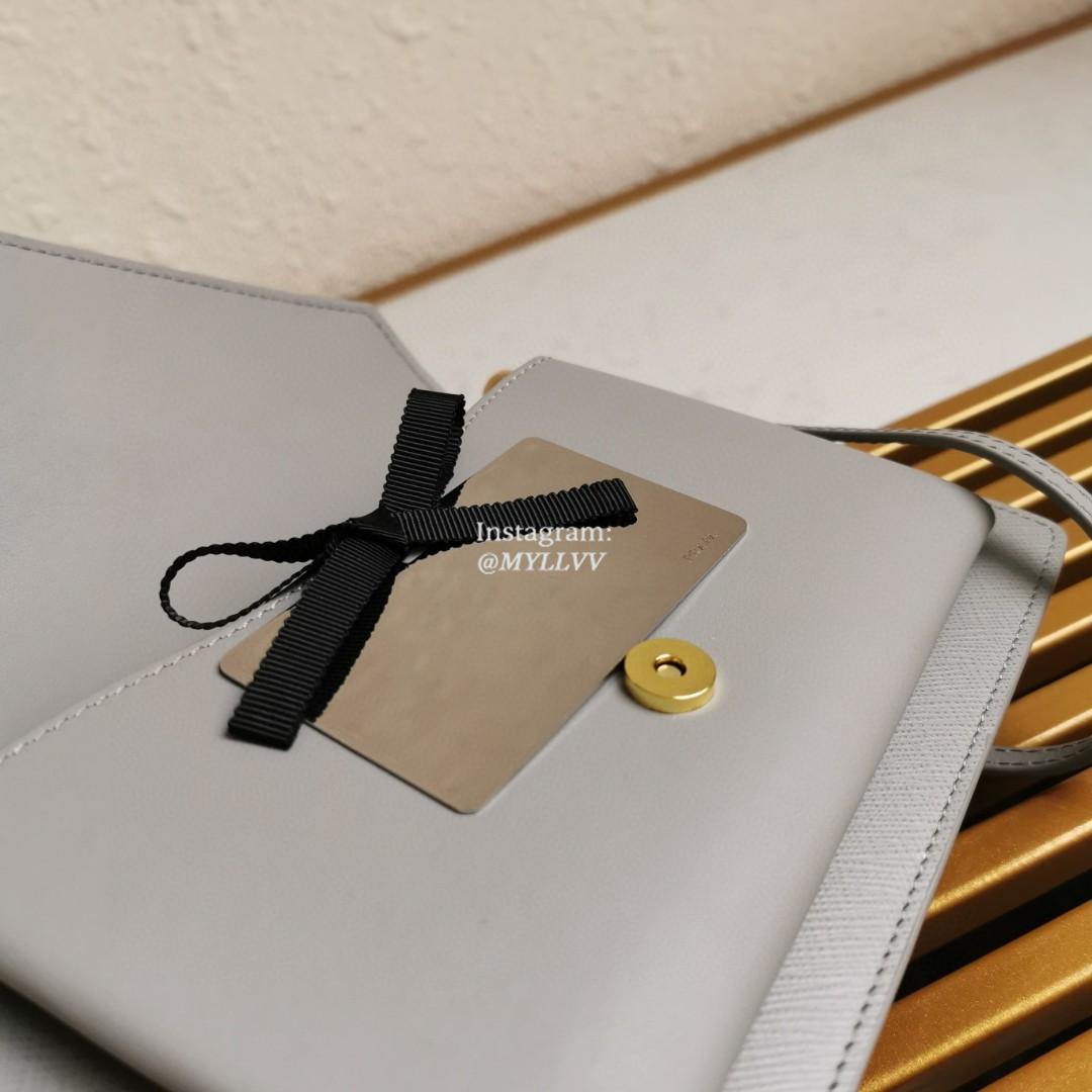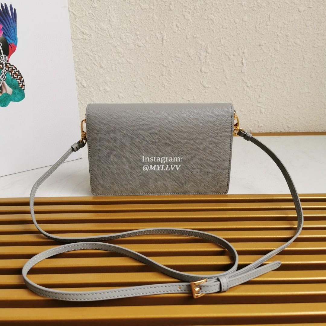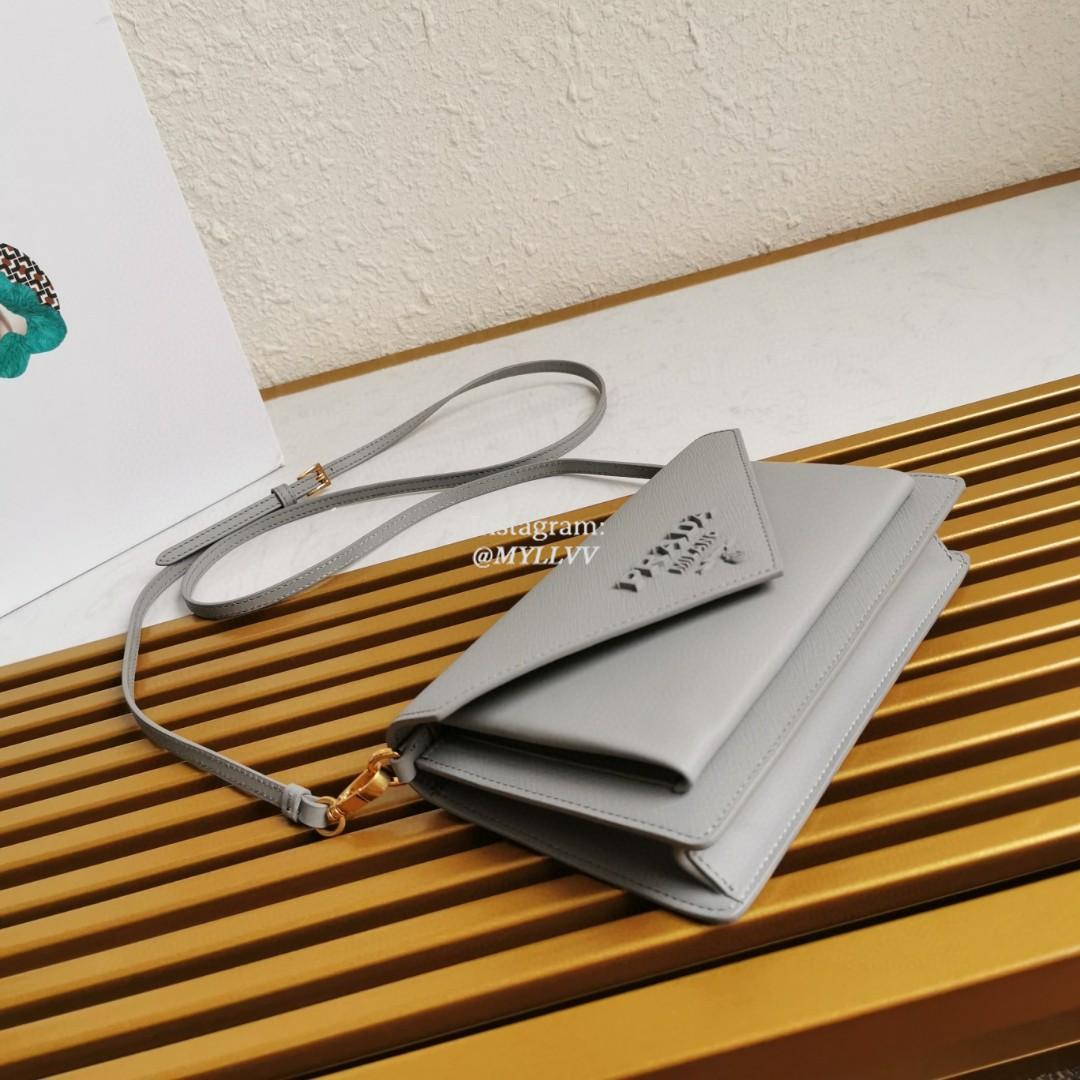 Top Quality Version:MYLLVV » Prada Grey Saffiano Leather Mini Envelope Bag 1BP020